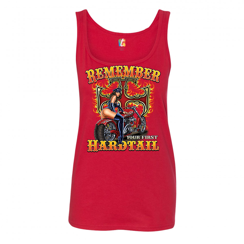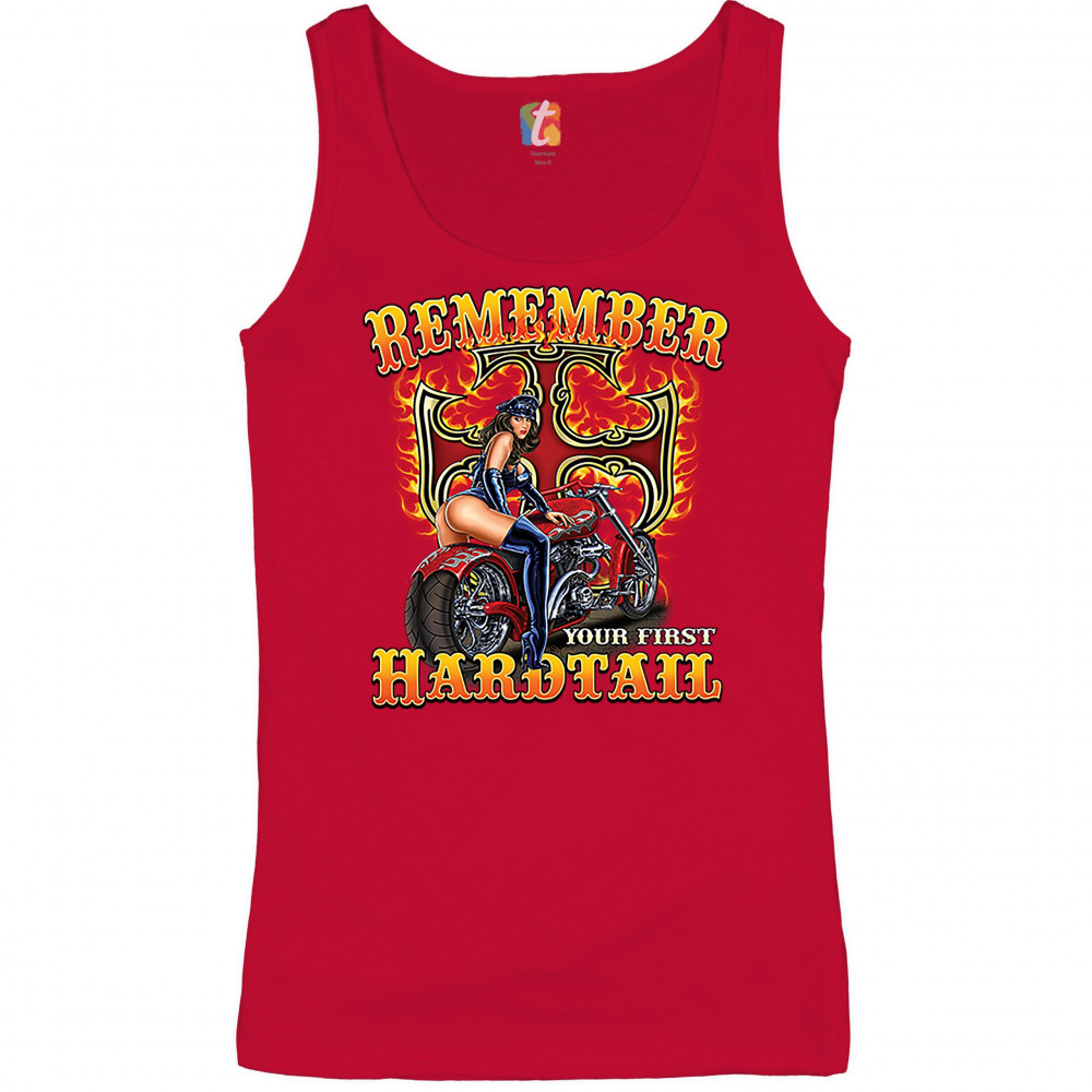REMEMBER YOUR FIRST HARDTAIL women's tank top biker babe motorcycle chopper red