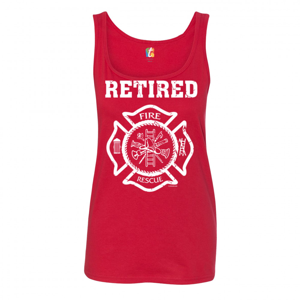 RETIRED FIREFIGHTER BADGE women's tank top fire and rescue fire department red
