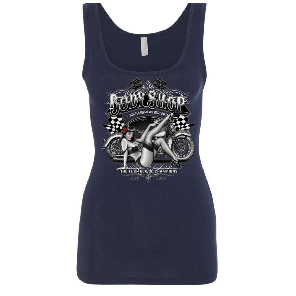 RETRO BODY SHOP women's tank top chopper sexy pin-up girl route 66 biker top navy blue