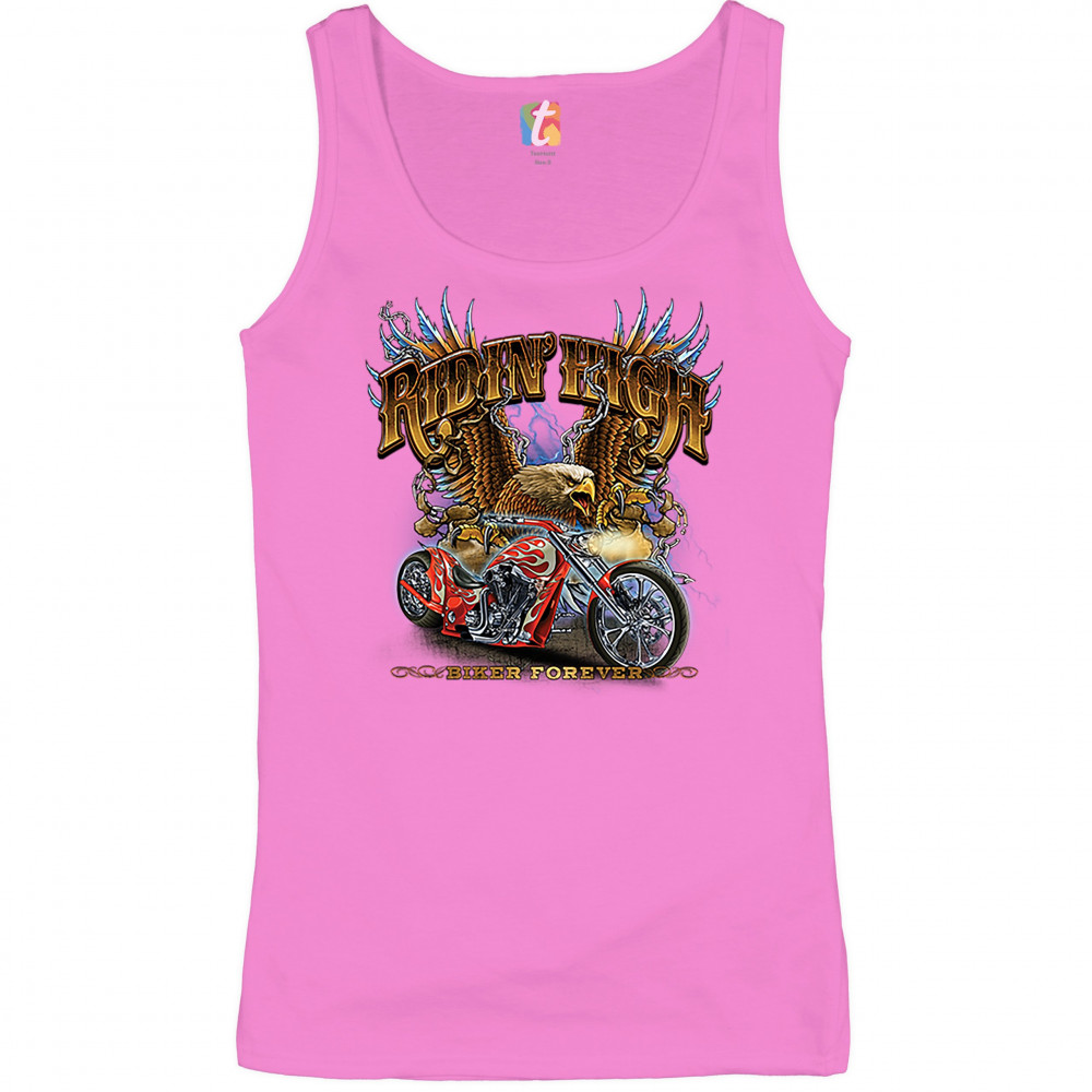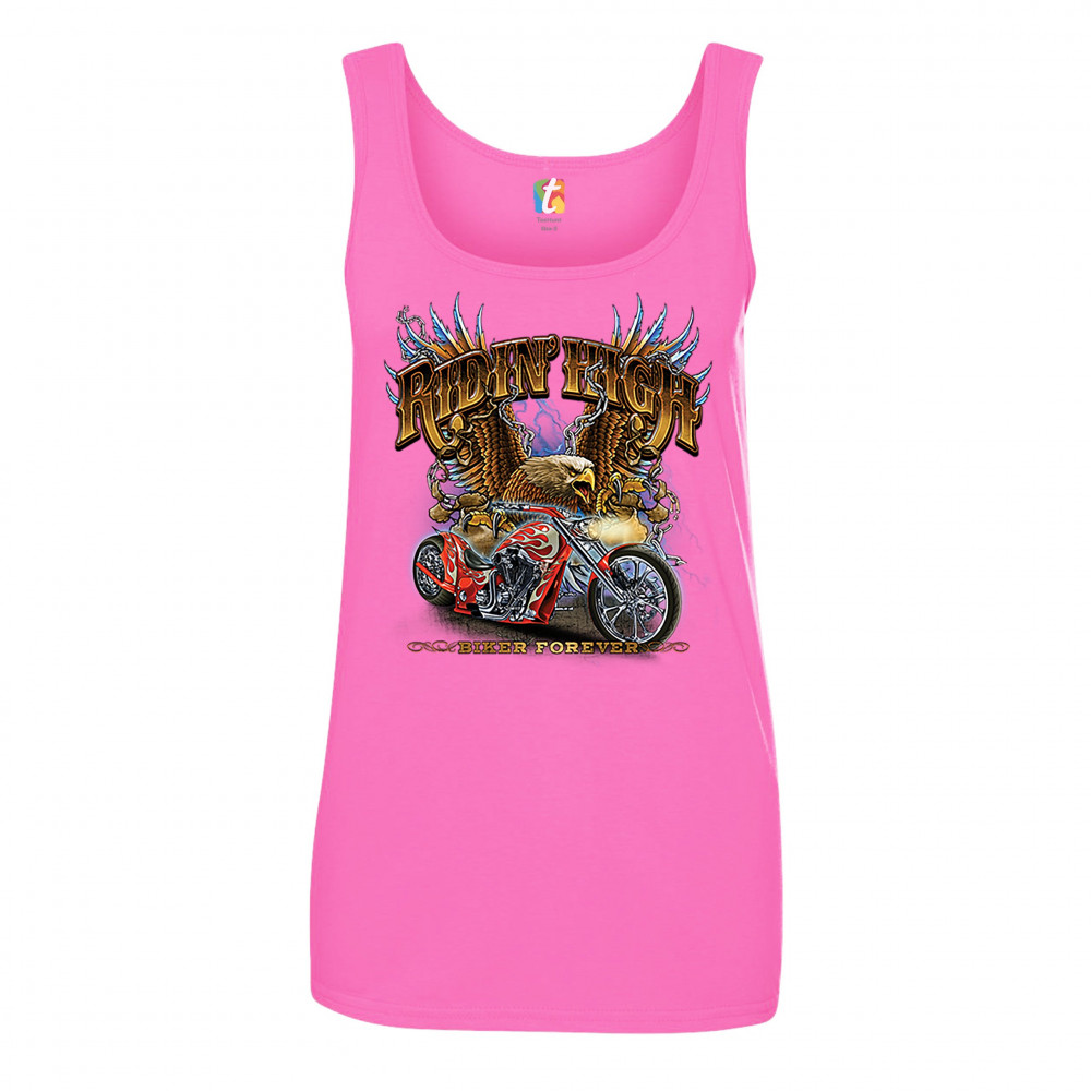RIDIN' HIGH women's tank top biker forever chopper rider american eagle pink