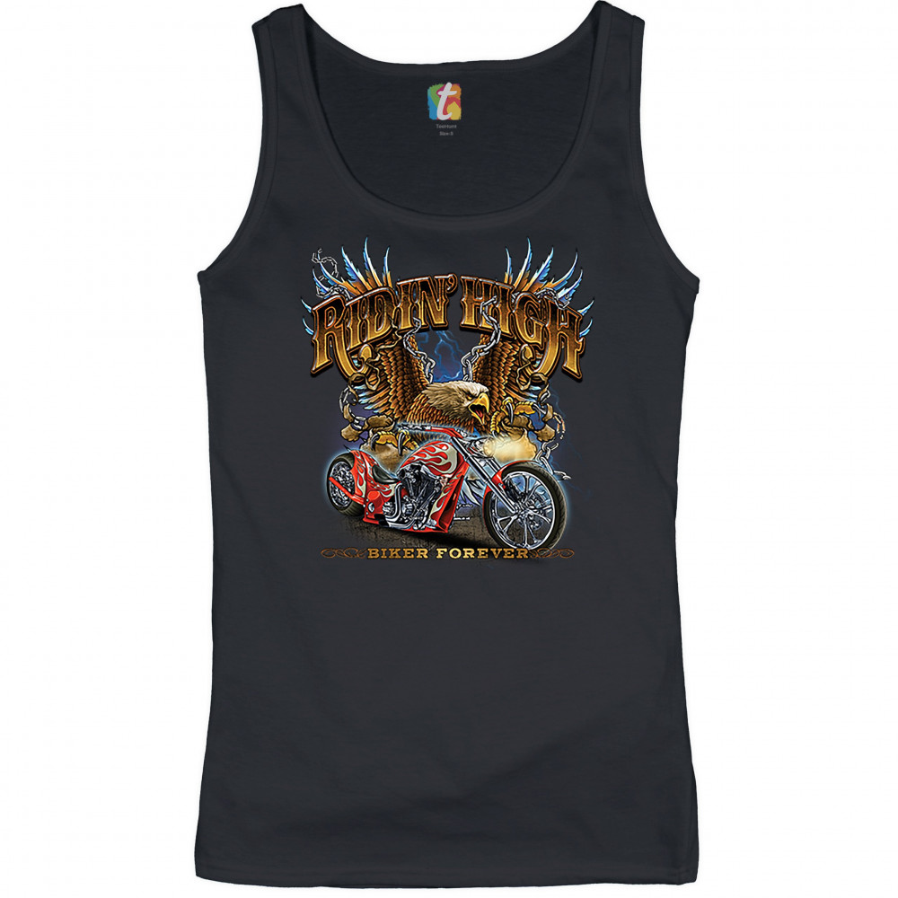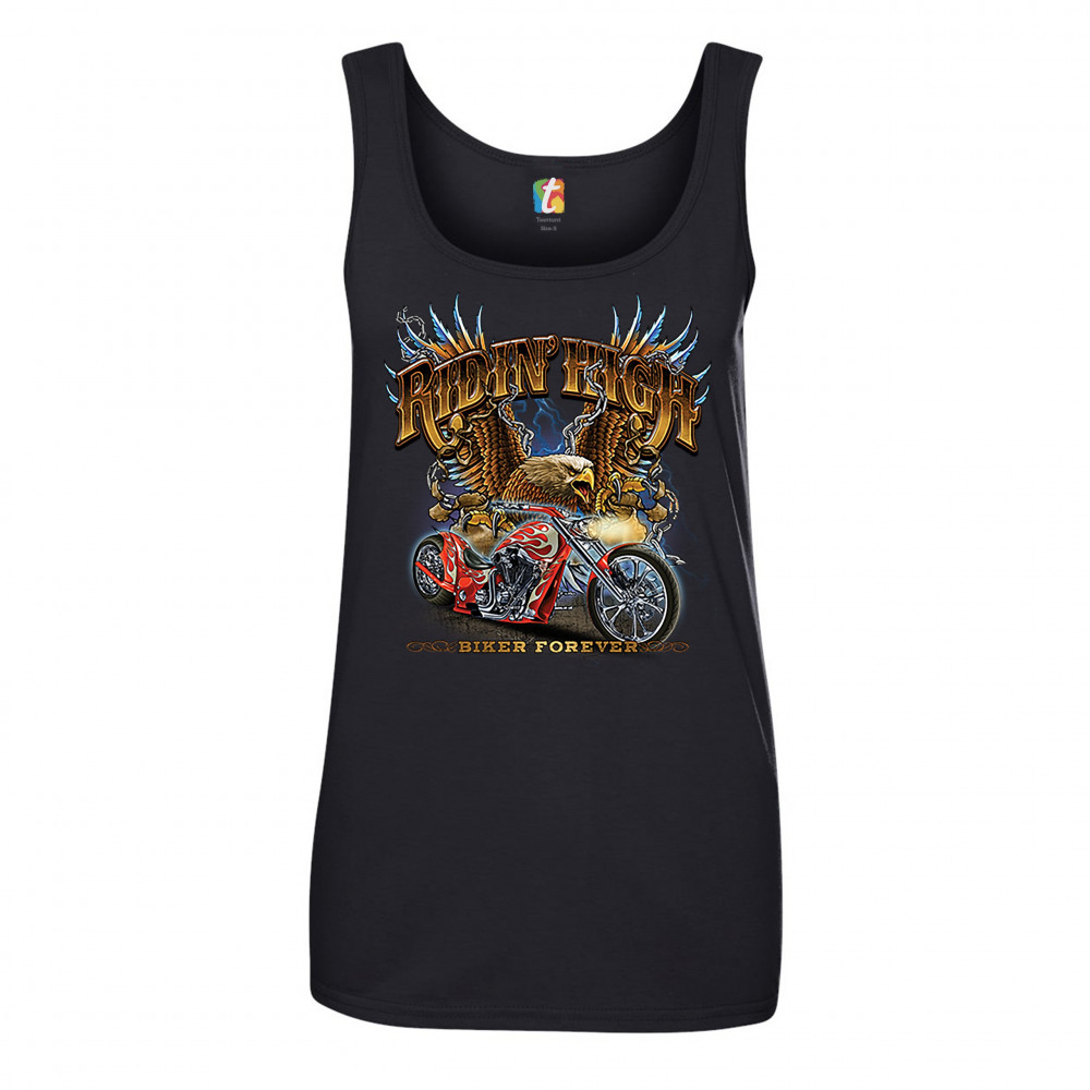 RIDIN' HIGH women's tank top biker forever chopper rider american eagle black