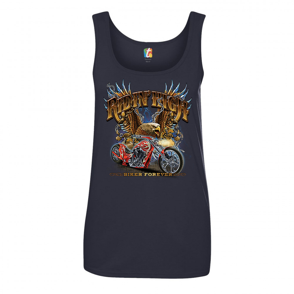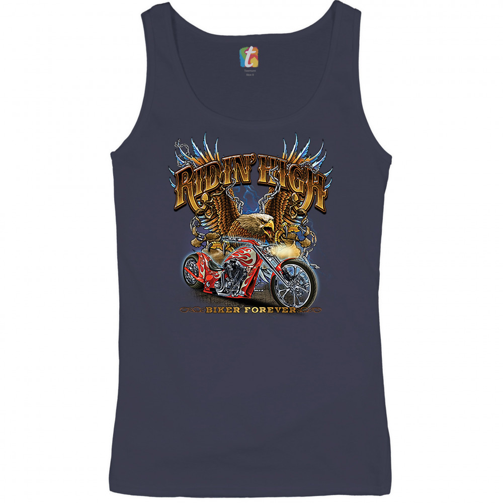 RIDIN' HIGH women's tank top biker forever chopper rider american eagle navy blue