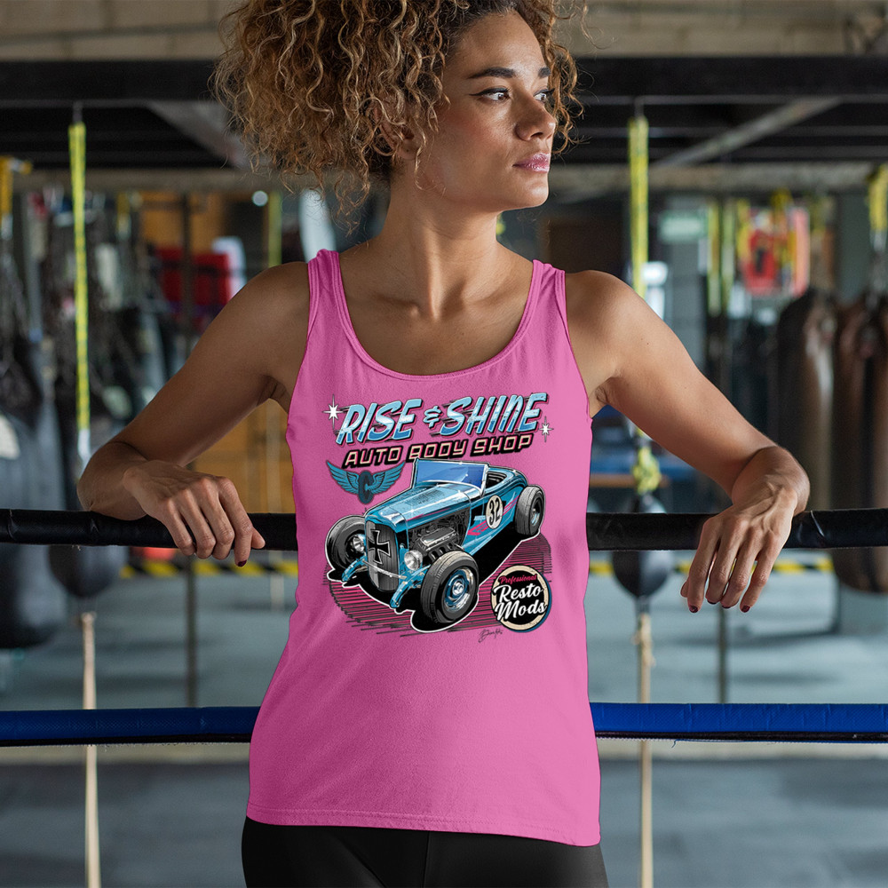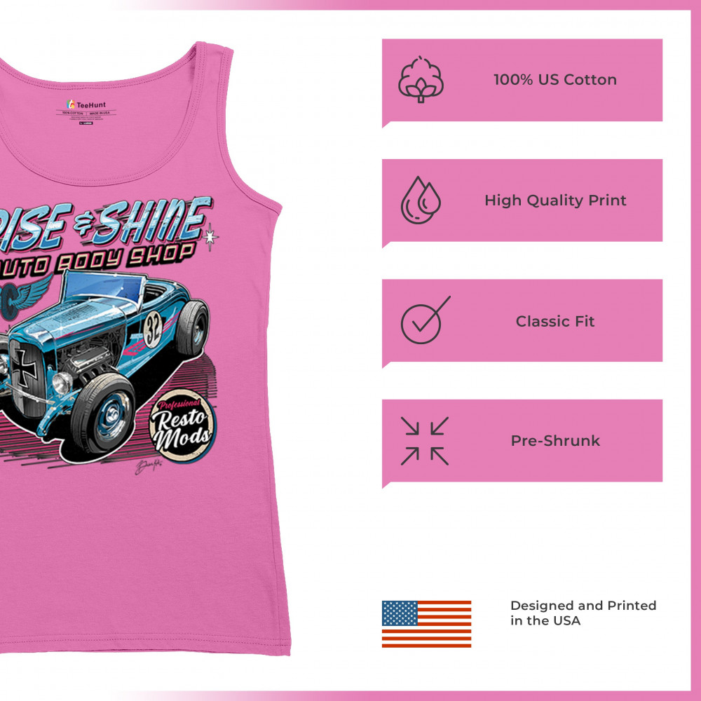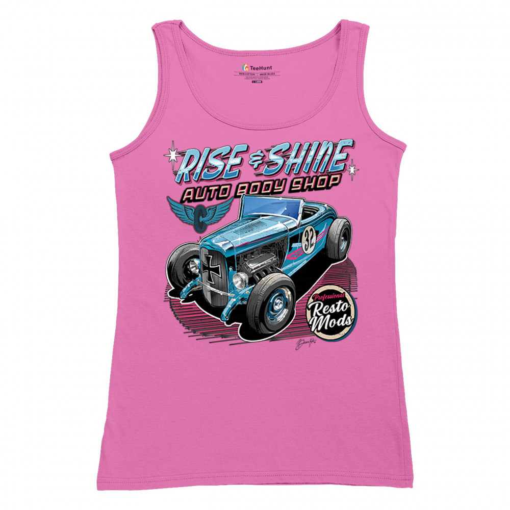 Celebrate vintage car culture with our "Rise & Shine Auto Body Shop" design. Perfect for car enthusiasts and auto restoration fans. Comfortable and durable.