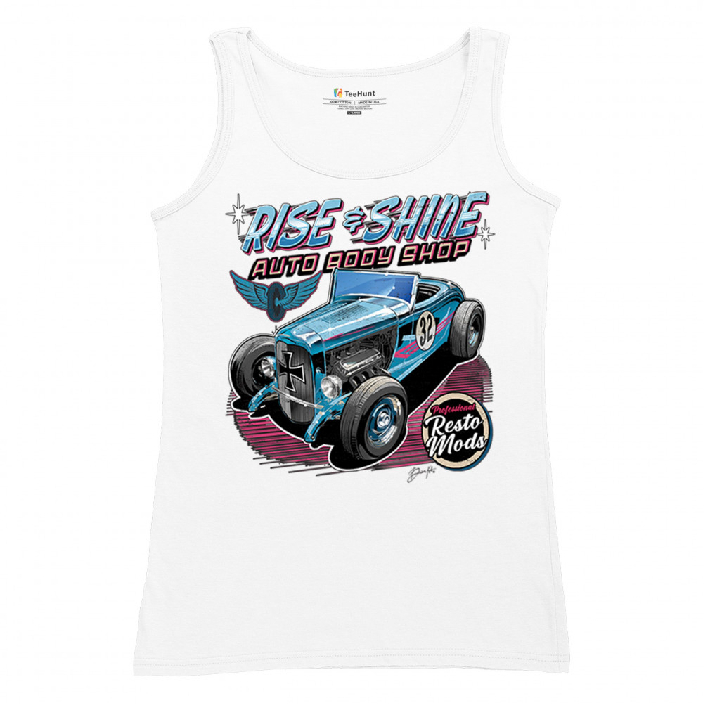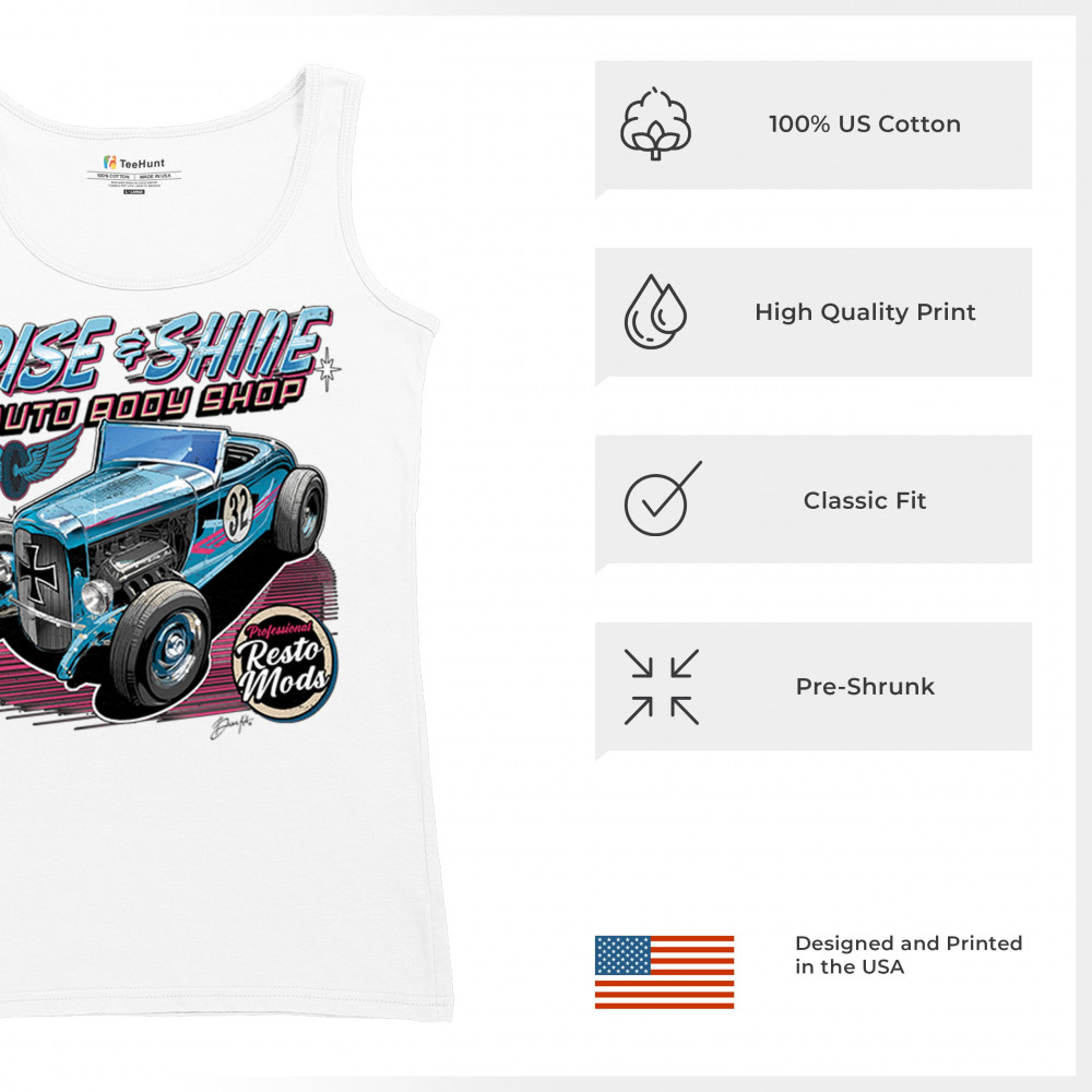 Celebrate vintage car culture with our "Rise & Shine Auto Body Shop" design. Perfect for car enthusiasts and auto restoration fans. Comfortable and durable.