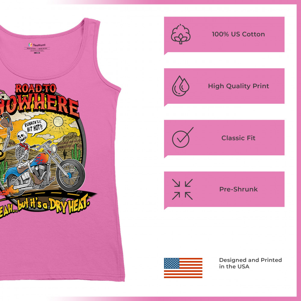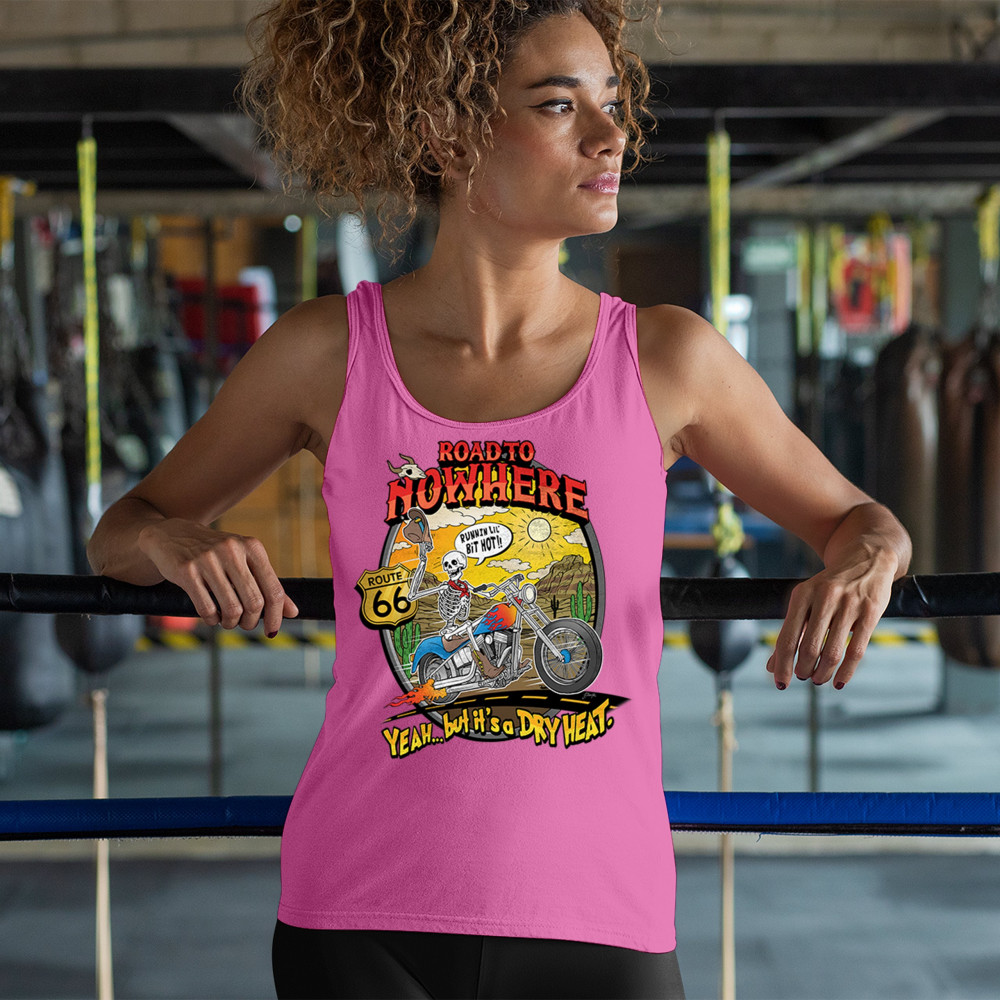 Our 'Road to Nowhere' tee is a salute to the thrill-seekers and the heat-bravers. Adorned with a bold skeleton cruising down Route 66, it embodies the spirit of adventure with a touch of playful defiance. A statement piece for anyone who lives for the ride and laughs in the face of danger. Join the ride into the sunset with this daring design.
