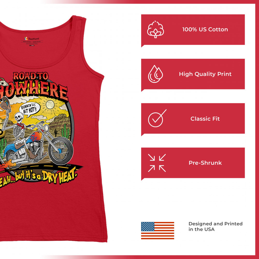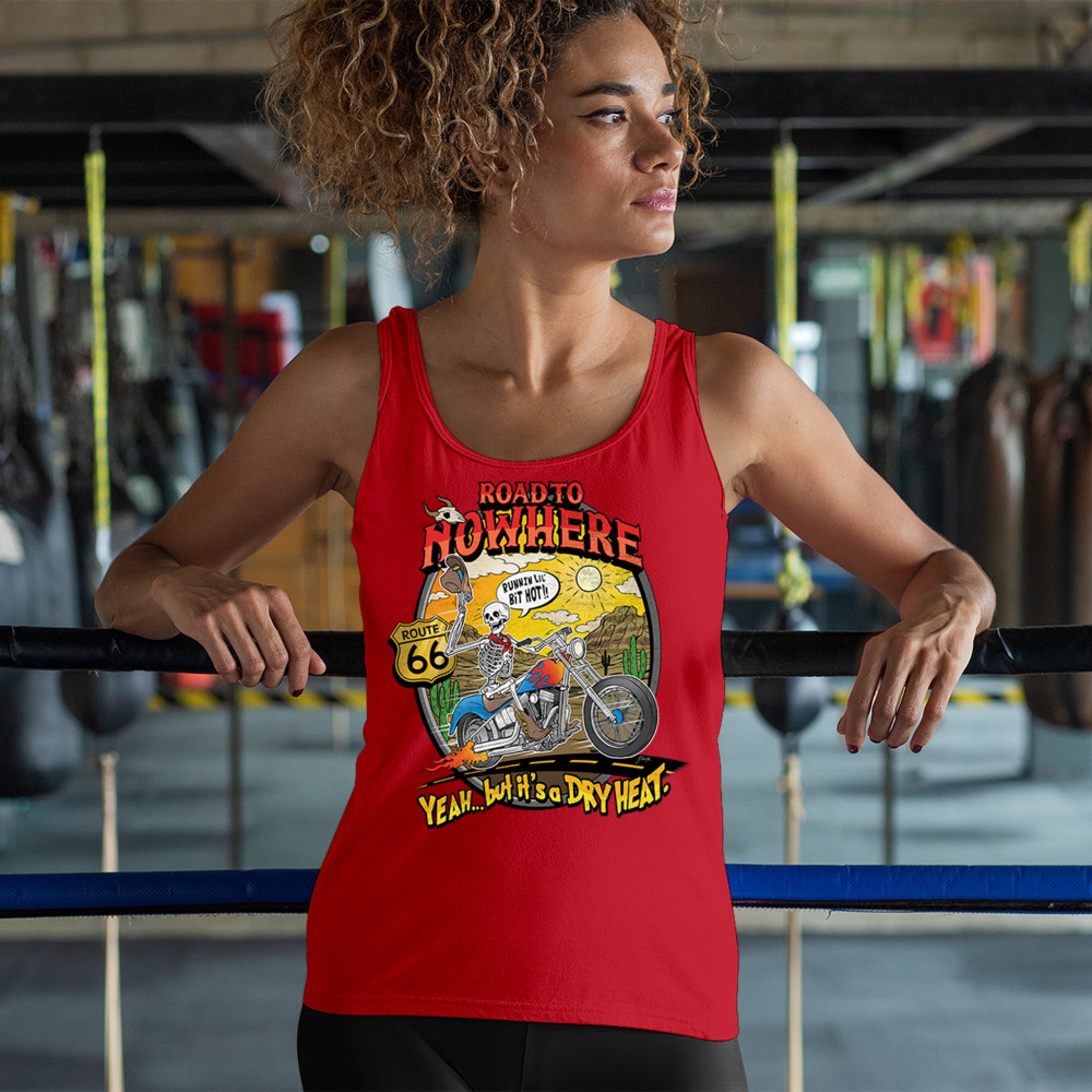 Our 'Road to Nowhere' tee is a salute to the thrill-seekers and the heat-bravers. Adorned with a bold skeleton cruising down Route 66, it embodies the spirit of adventure with a touch of playful defiance. A statement piece for anyone who lives for the ride and laughs in the face of danger. Join the ride into the sunset with this daring design.