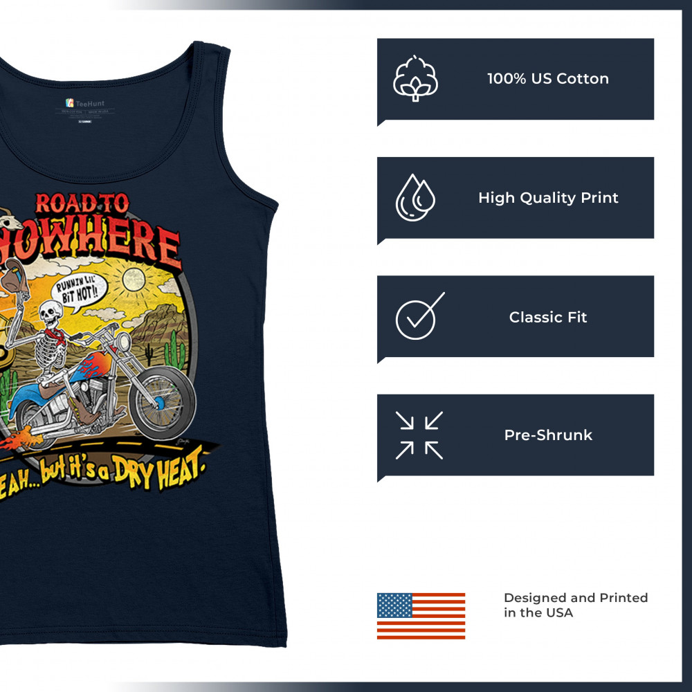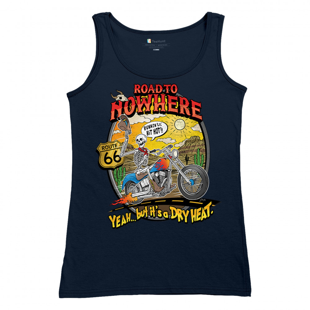 Discover the 'Road to Nowhere' T-shirt: a blend of bold graphics and adventurous spirit. Embrace the ride with our Route 66 skeleton biker design.