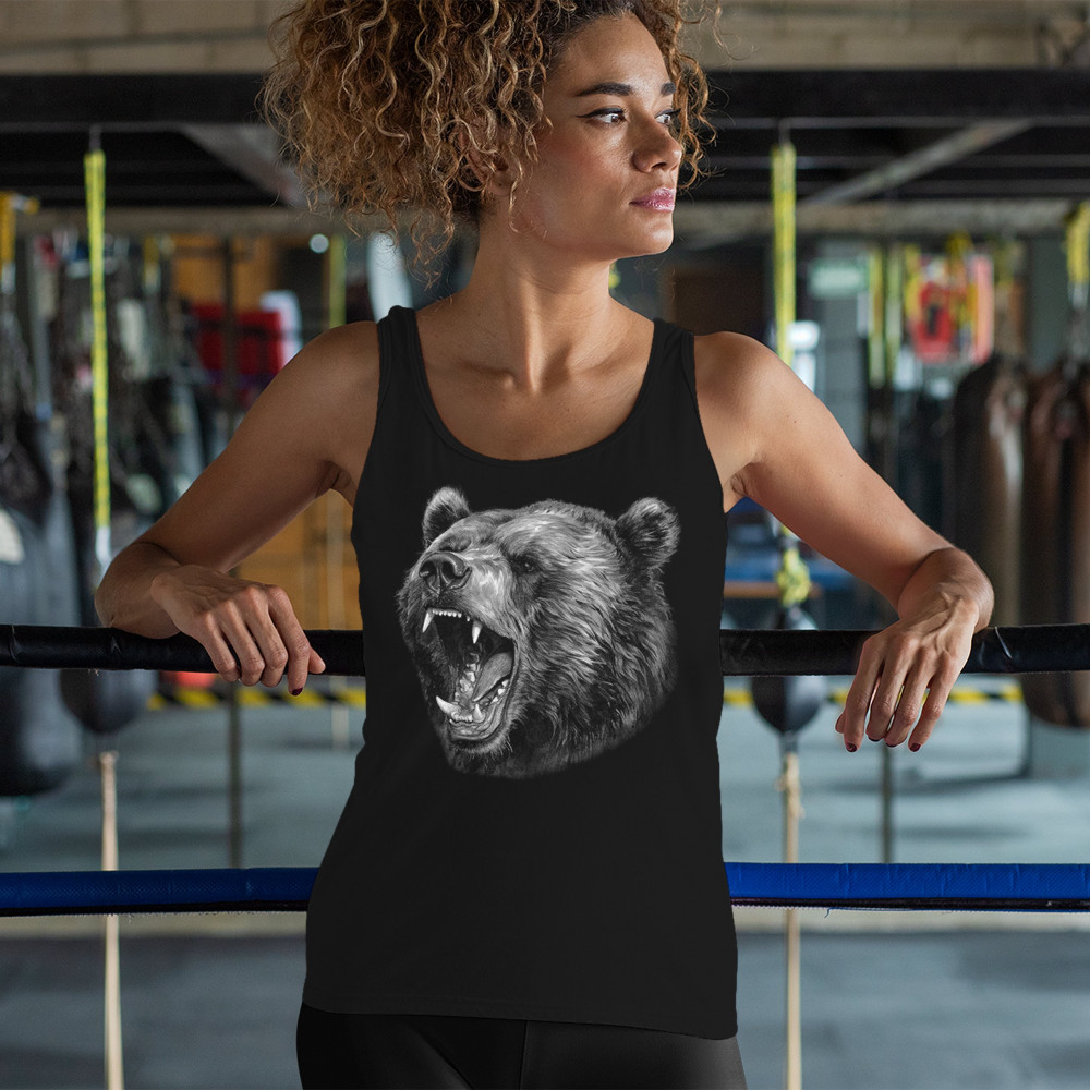 Bold roaring bear design for hunters, survivalists, and nature lovers. Perfect for hikes, camps, forest wear, and outdoor gear.