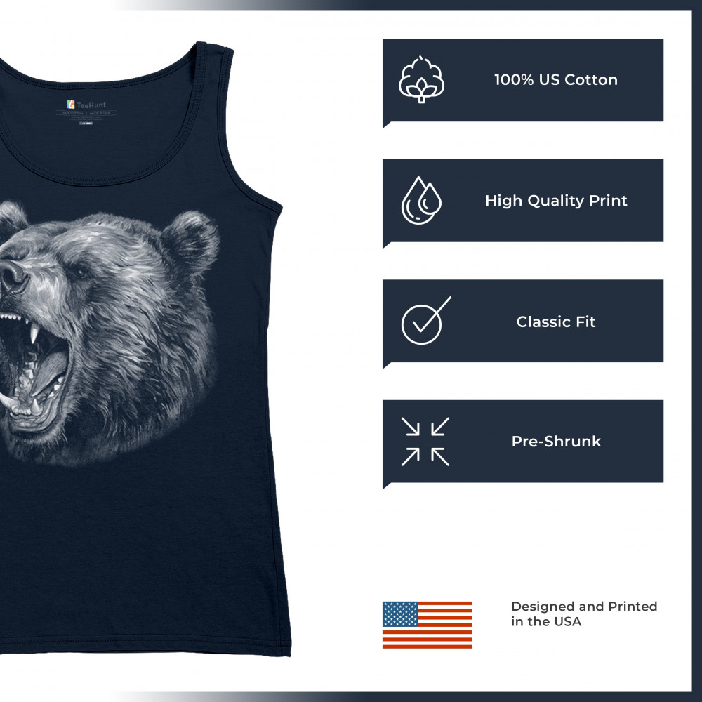 Bold roaring bear design for hunters, survivalists, and nature lovers. Perfect for hikes, camps, forest wear, and outdoor gear.