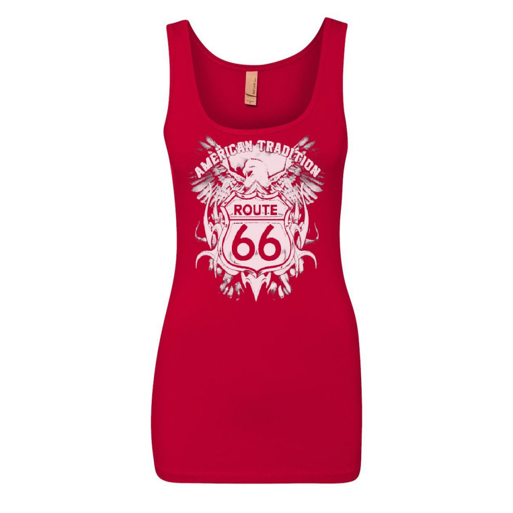 ROUTE 66 AMERICAN TRADITION women's tank top biker motorcycle top red