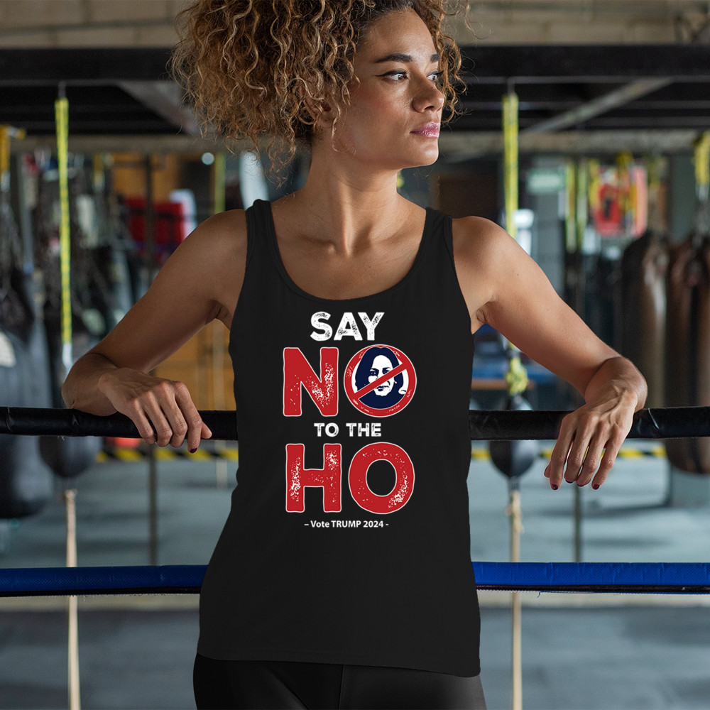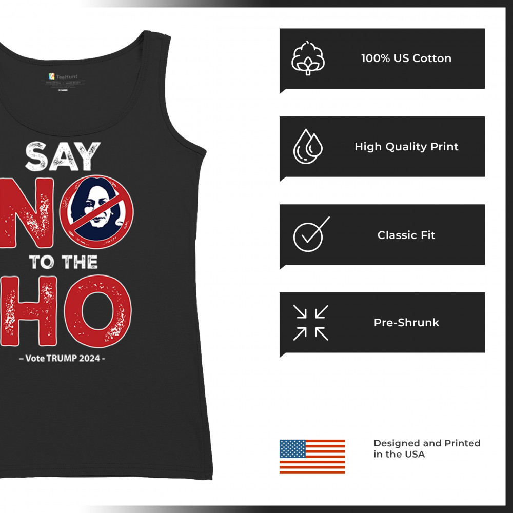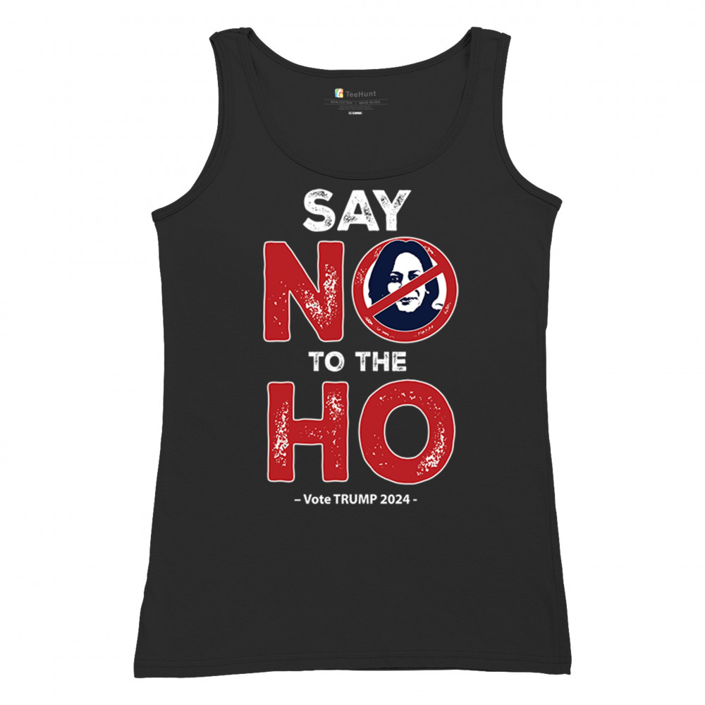Show your conservative spirit with the "Say No to the Ho" print, perfect for rallies or daily wear. Support Trump-Vance 2024 and Make America Great Again.