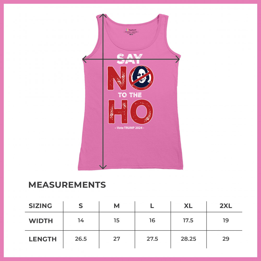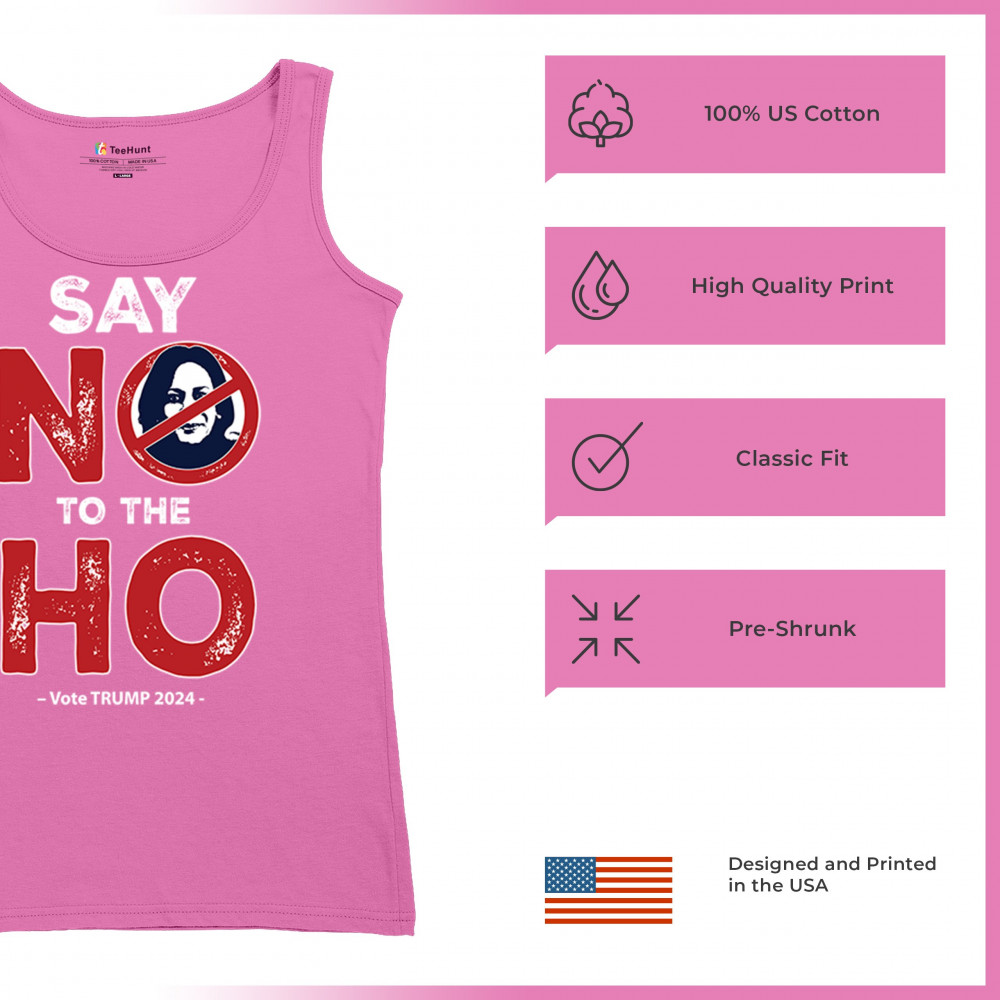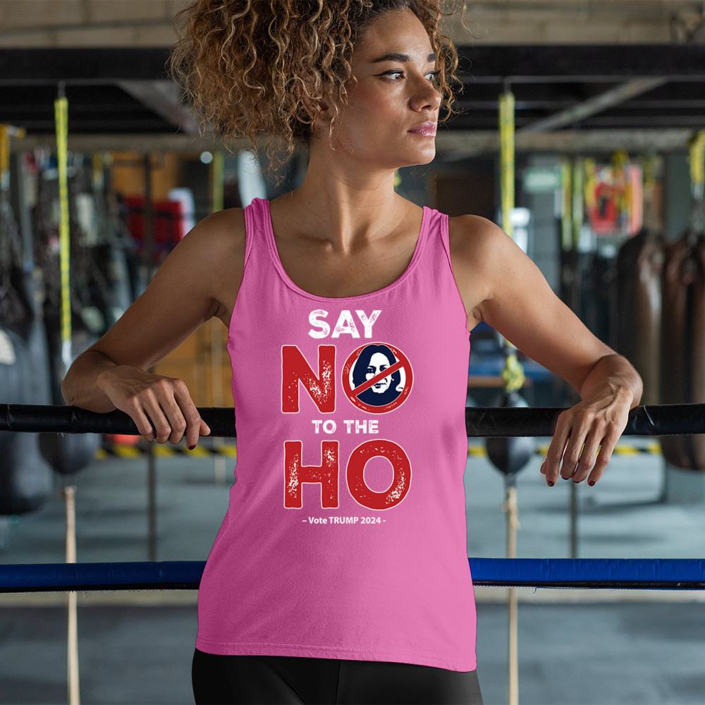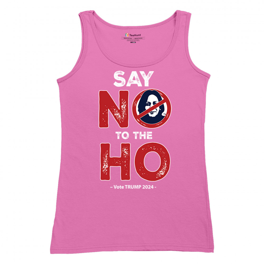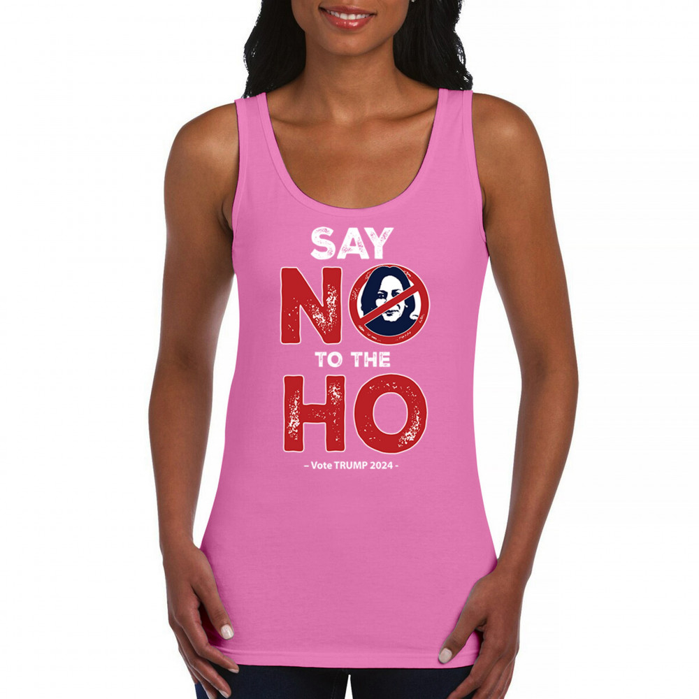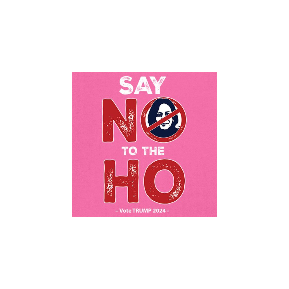 Show your conservative spirit with the "Say No to the Ho" print, perfect for rallies or daily wear. Support Trump-Vance 2024 and Make America Great Again.
