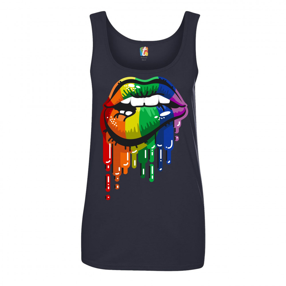 SEXY MELTING RAINBOW LIPS women's tank top lgbt queer gay pride love wins navy blue