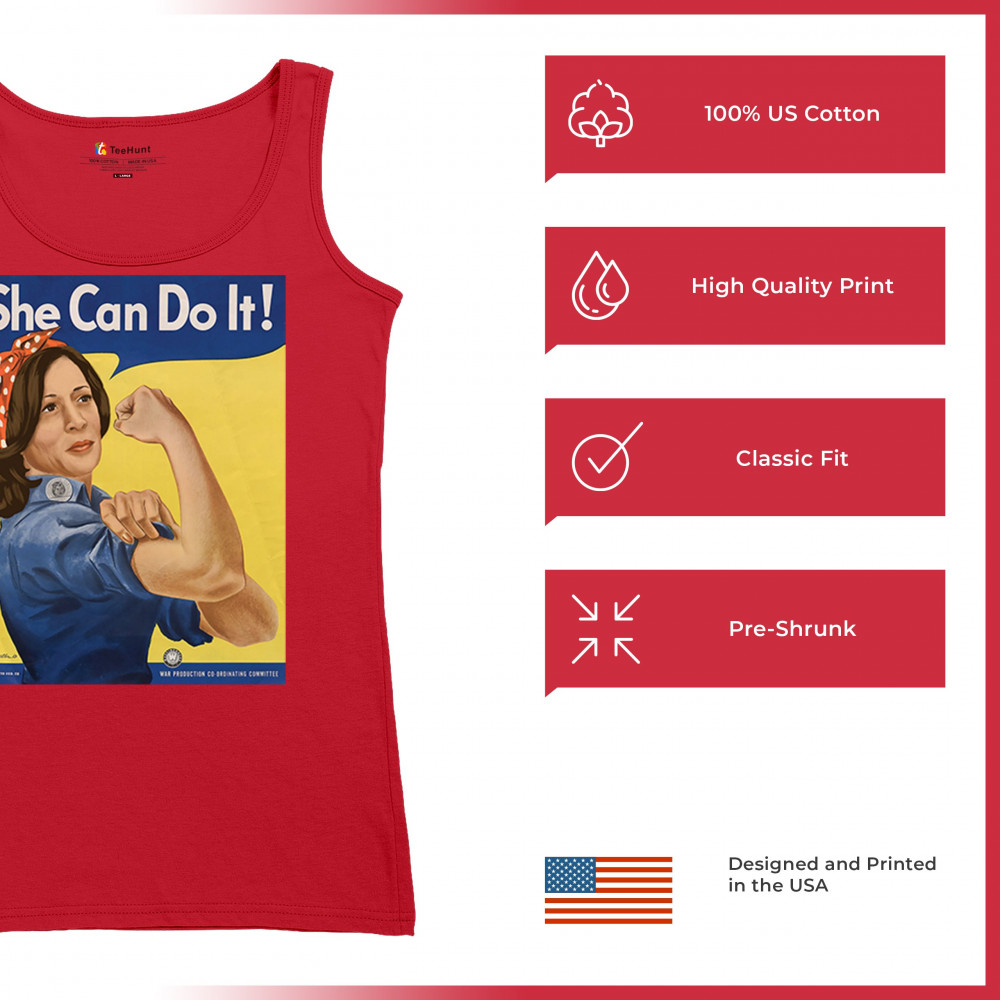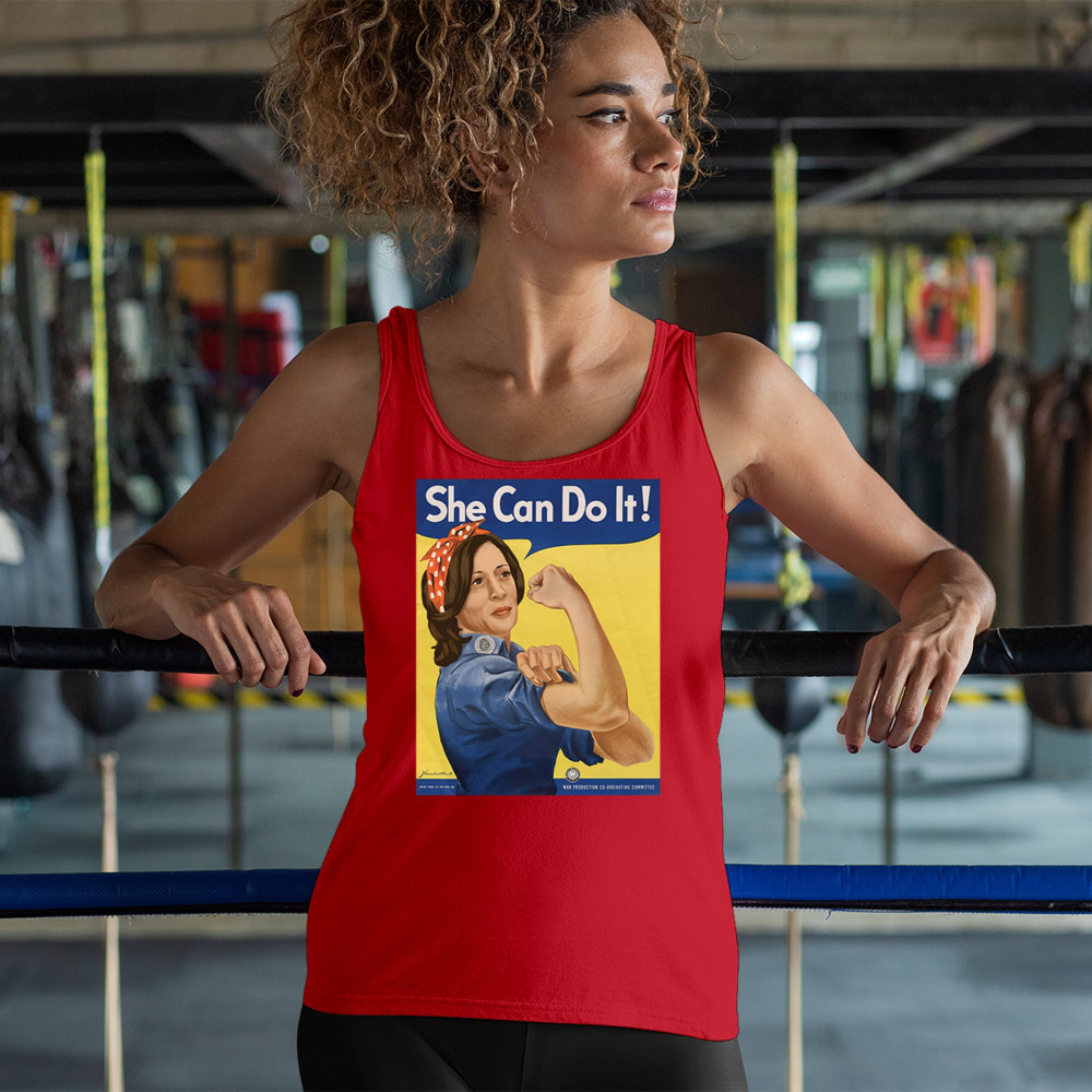 Show your support for Kamala Harris in 2024 with this empowering "She Can Do It!" design. Inspired by Rosie the Riveter, it symbolizes strength, equality, and progress.