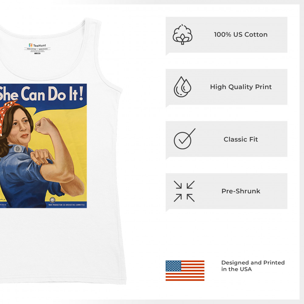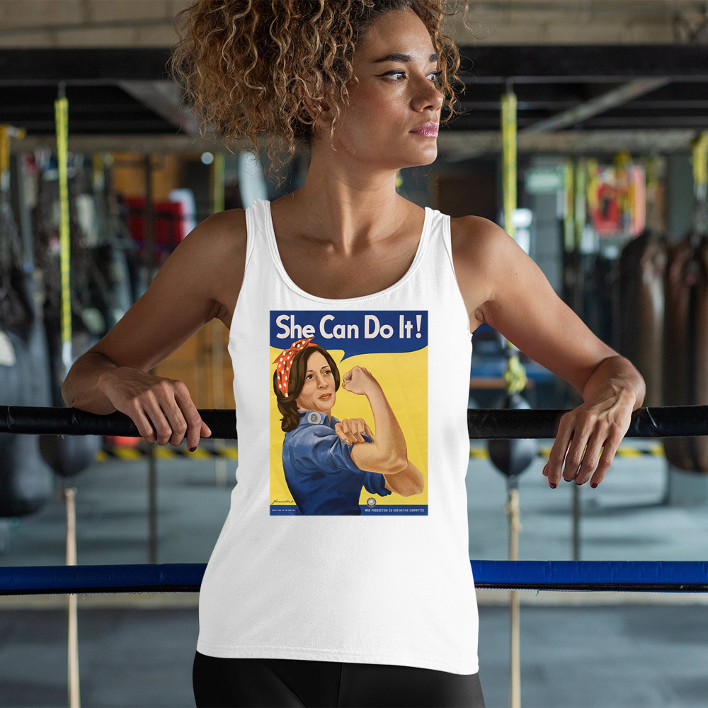 Show your support for Kamala Harris in 2024 with this empowering "She Can Do It!" design. Inspired by Rosie the Riveter, it symbolizes strength, equality, and progress.
