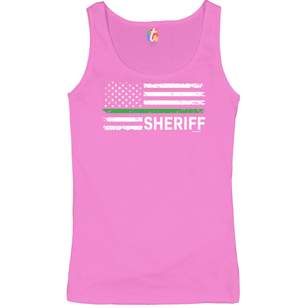 SHERIFF DISTRESSED AMERICAN FLAG women's tank top first responders patriotic pink