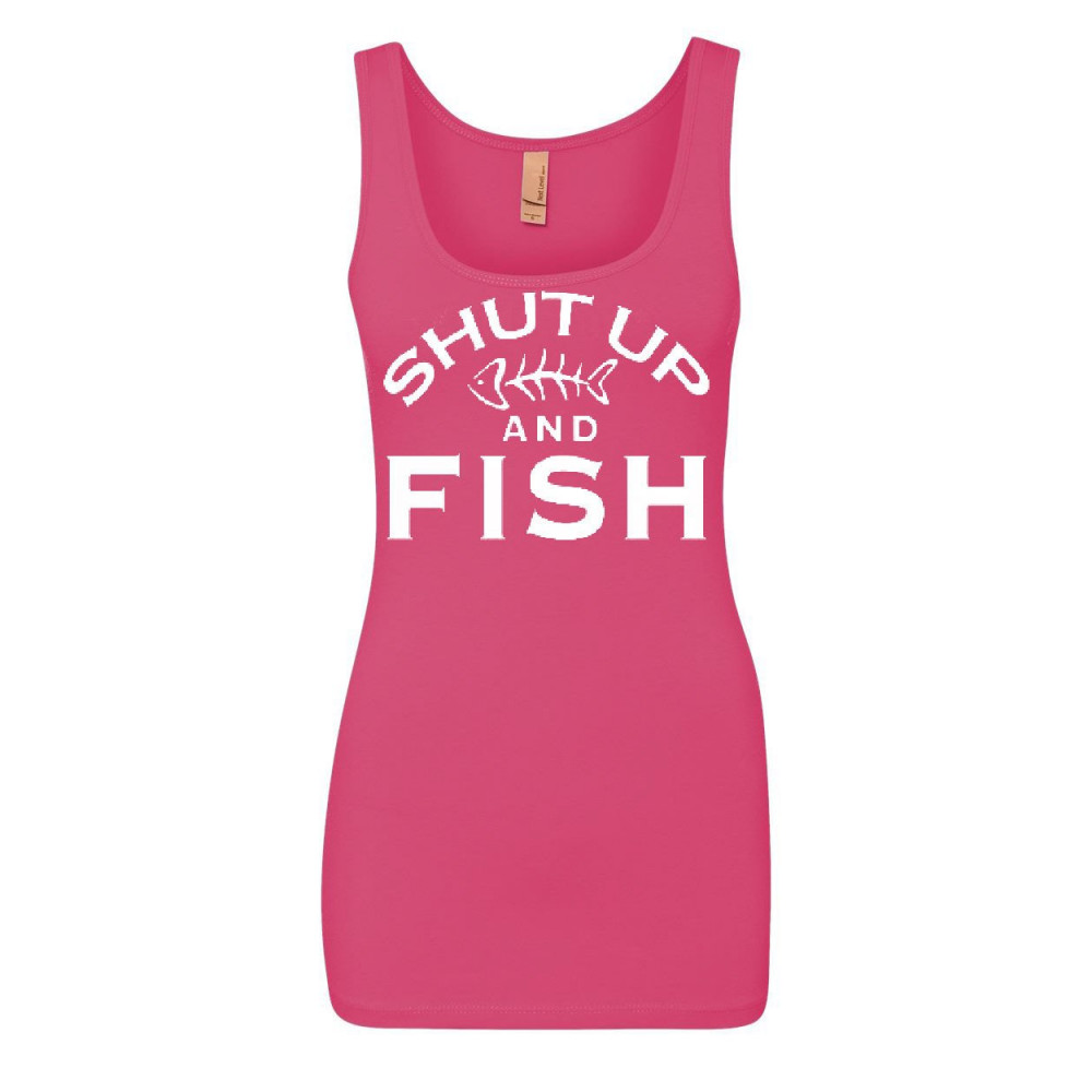 SHUT UP AND FISH women's tank top funny fishing top pink