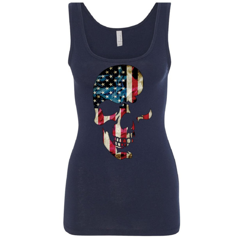 SKULL AMERICANA women's tank top patriotic 4th of july stars and stripes top navy blue