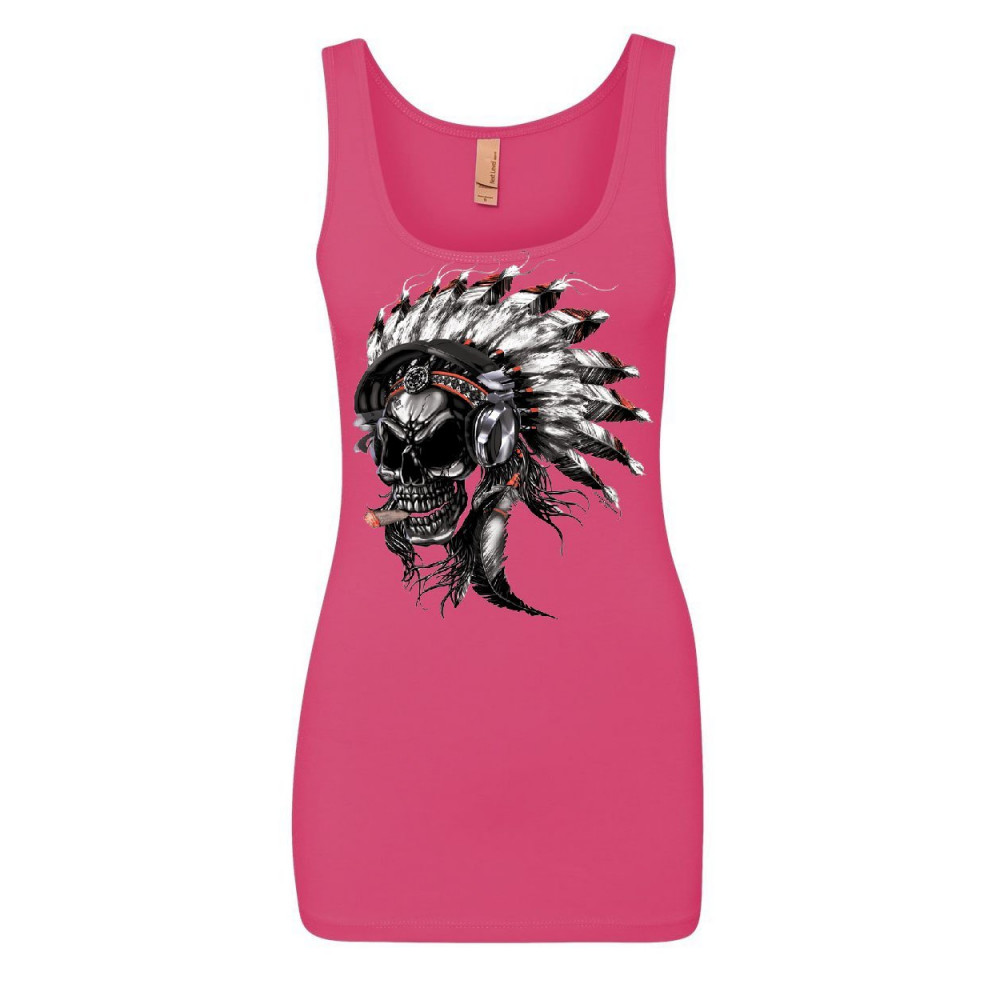 SKULL WITH INDIAN HEADRESS women's tank top headphones cigar top pink