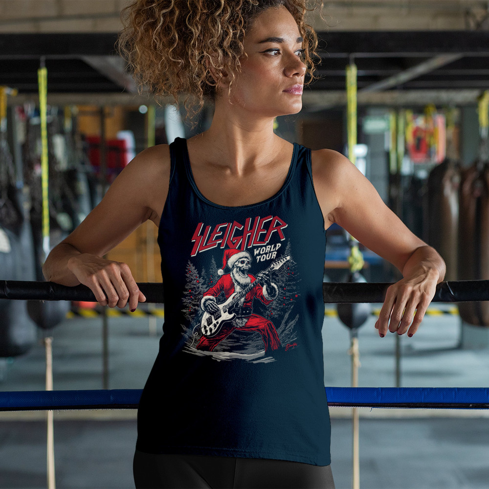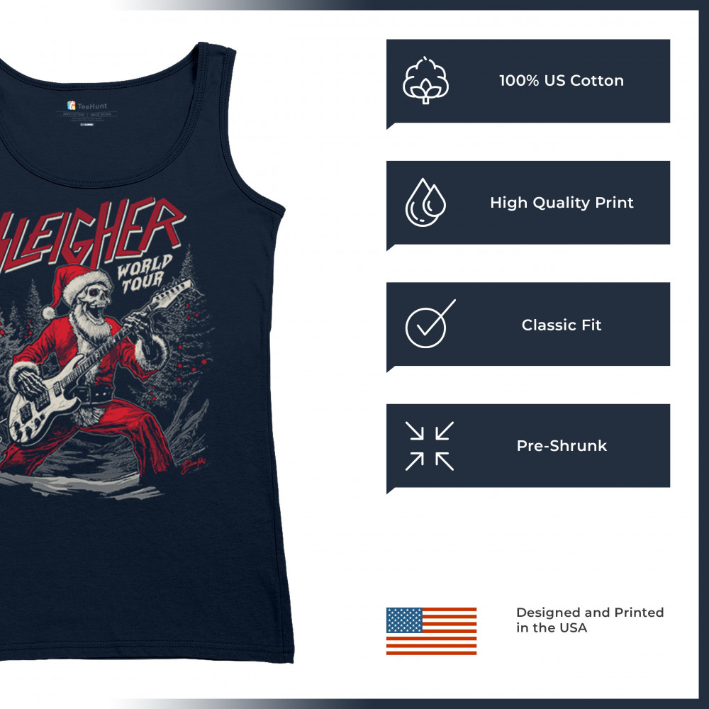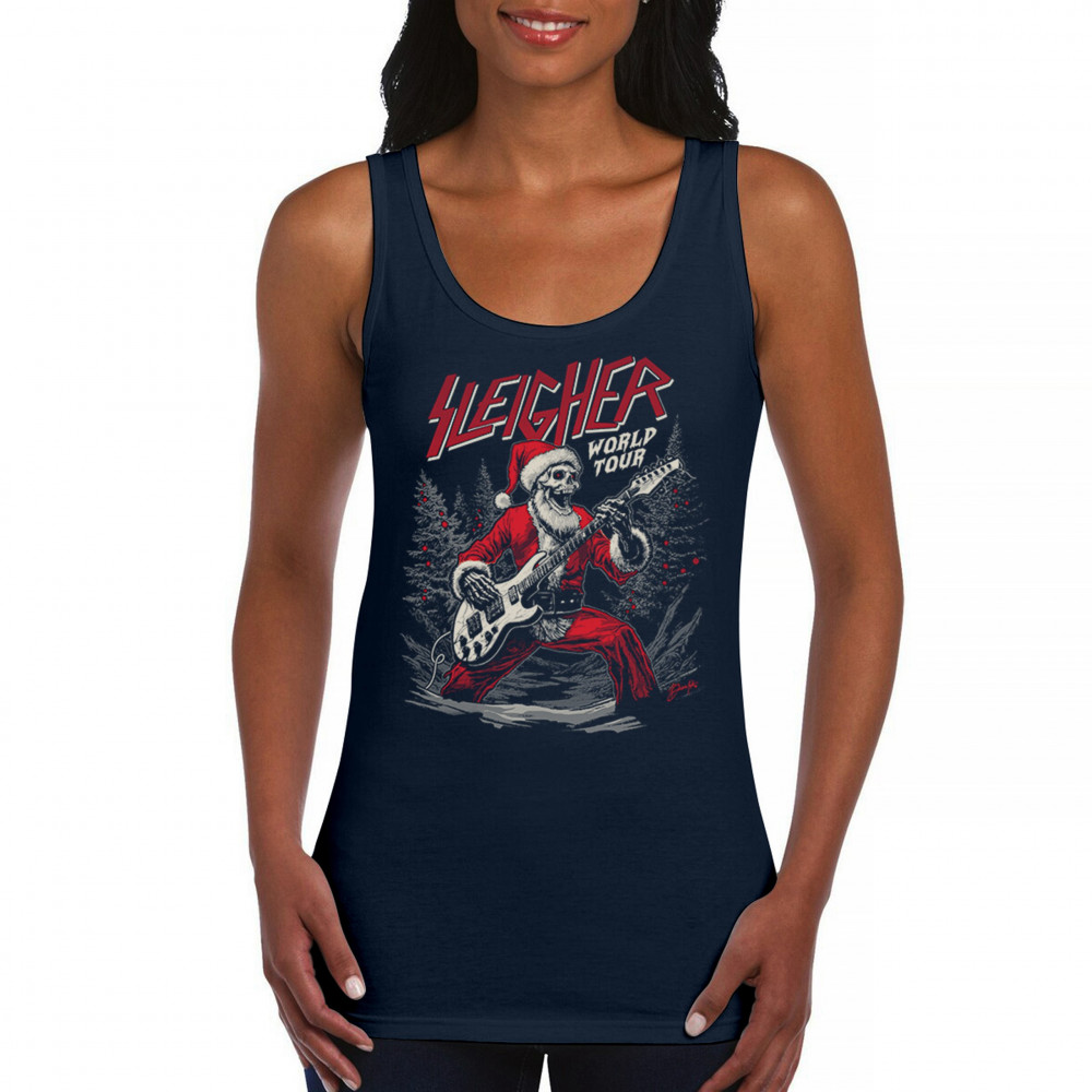 Rock the holidays with the "Sleigher World Tour" Santa skeleton design. Perfect for music lovers, holiday parties, and bold Christmas fashion!
