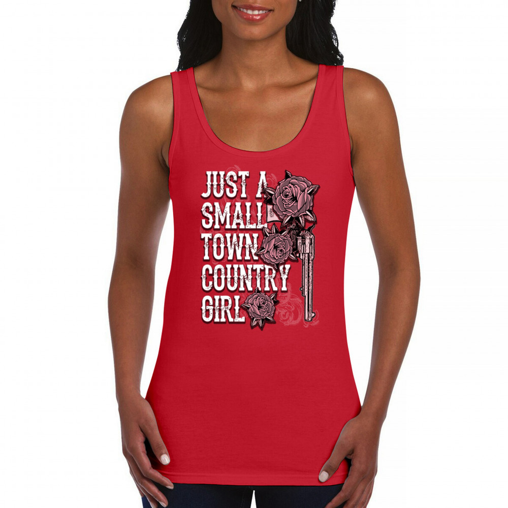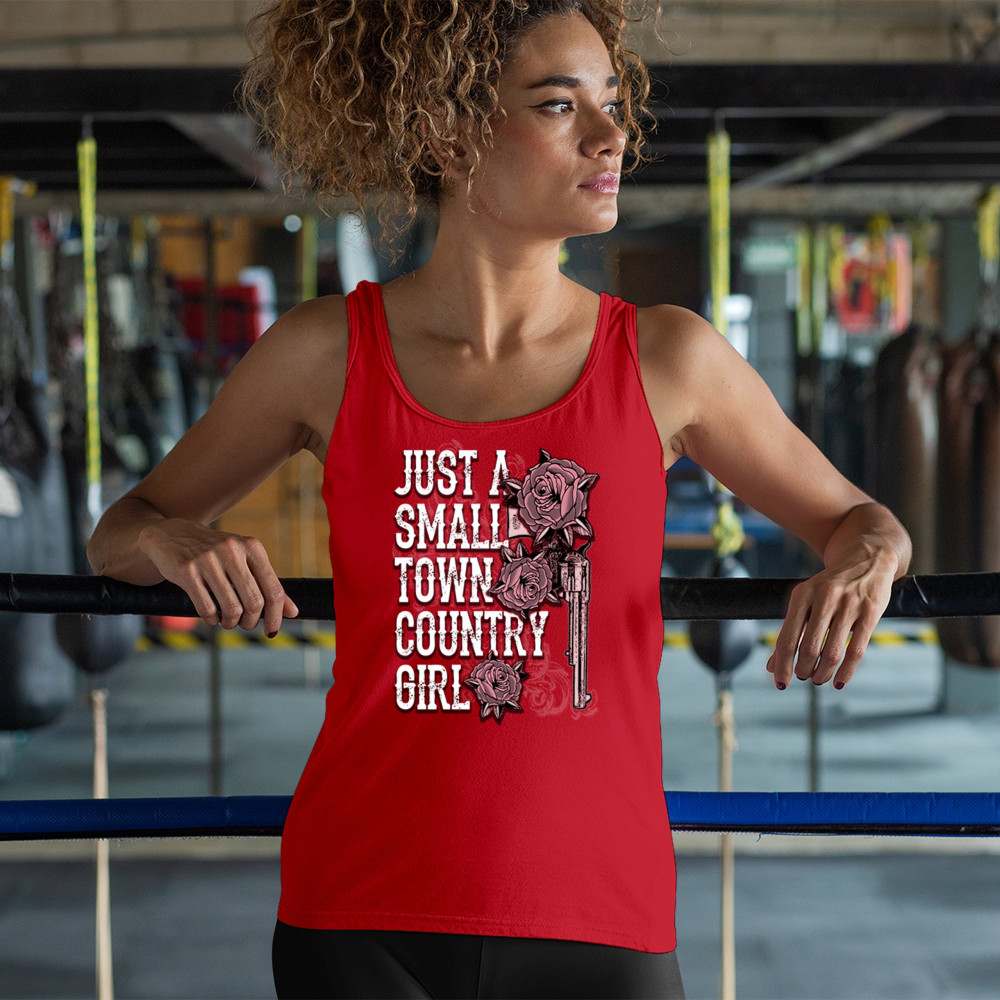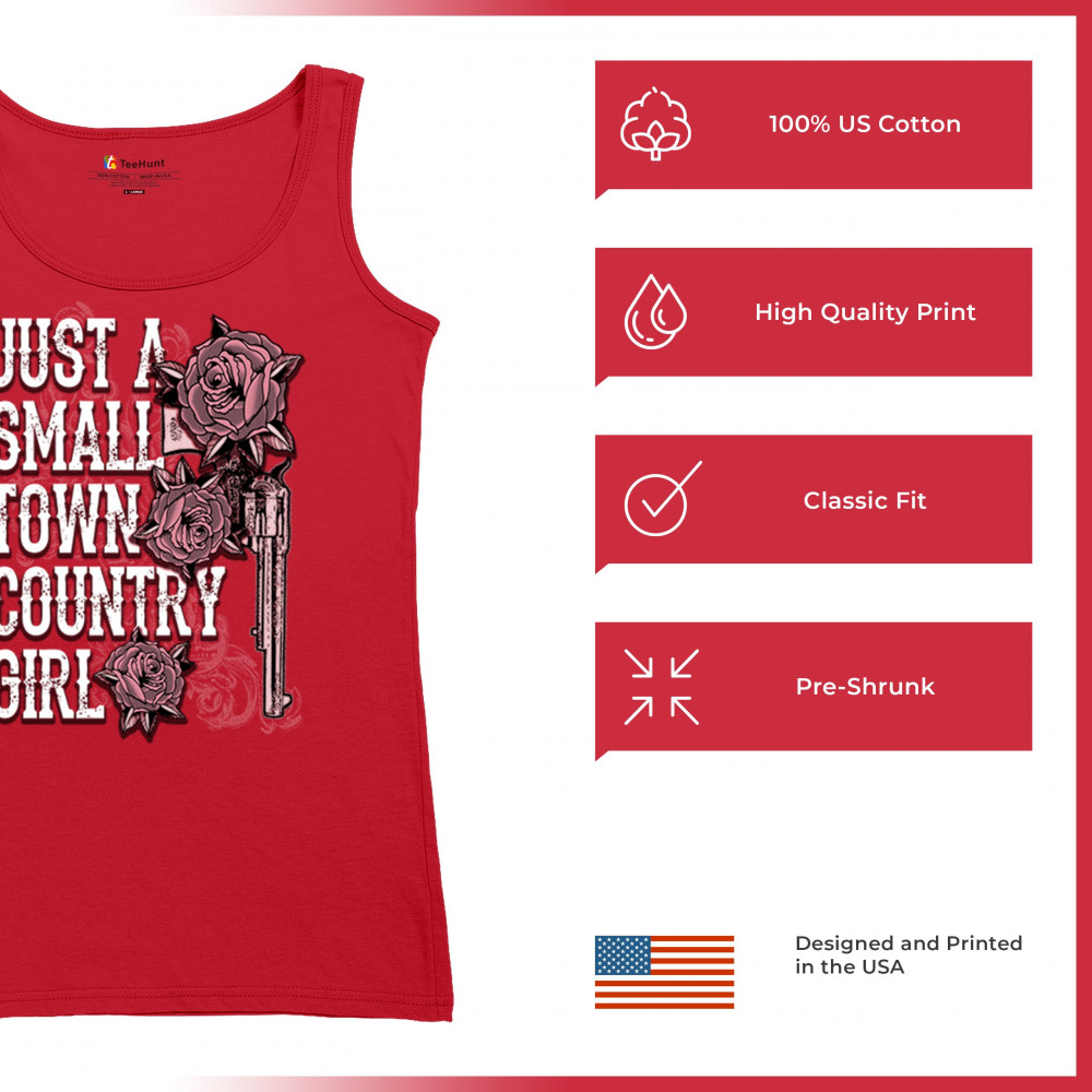Rustic small town country girl design with rose and revolver art. Great for cowgirls, rodeos, fairs, and southern pride style.