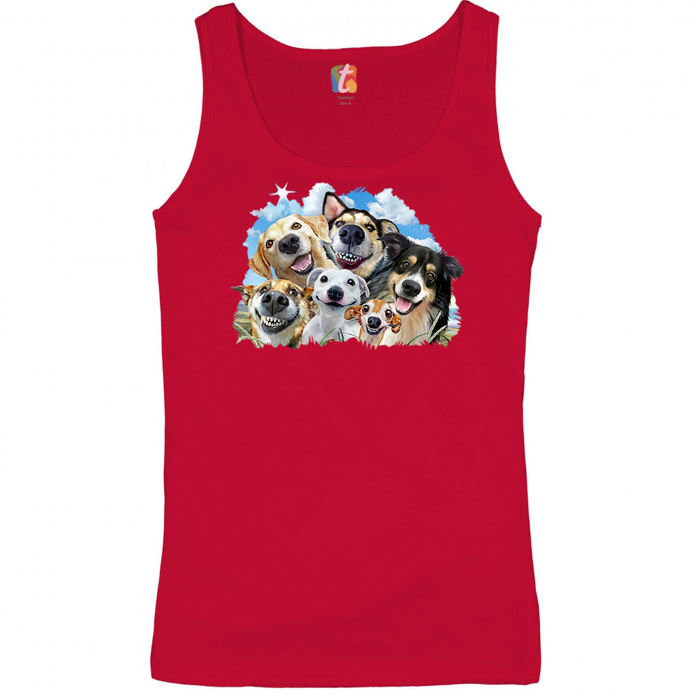 SMILING DOGS' SELFIE women's tank top funny animal dog lover cute puppies red