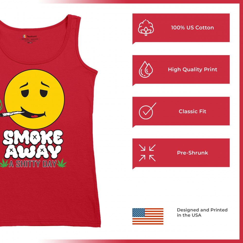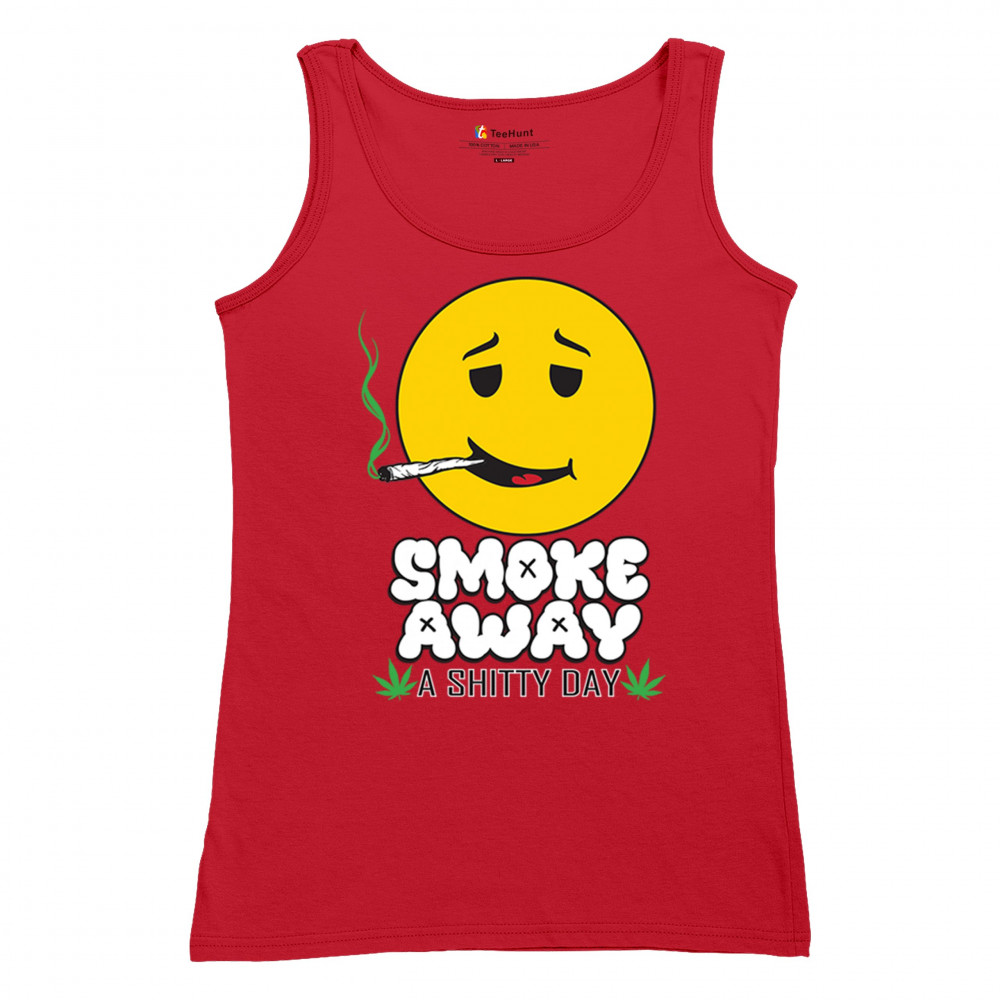 Smiley face with joint and “Smoke Away a Sh*tty Day†message. A perfect cannabis design for stoners, chillers, and sarcastic stress relief.