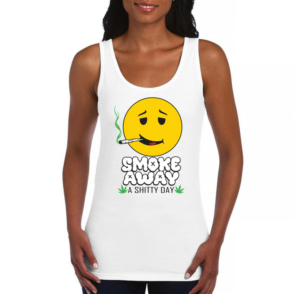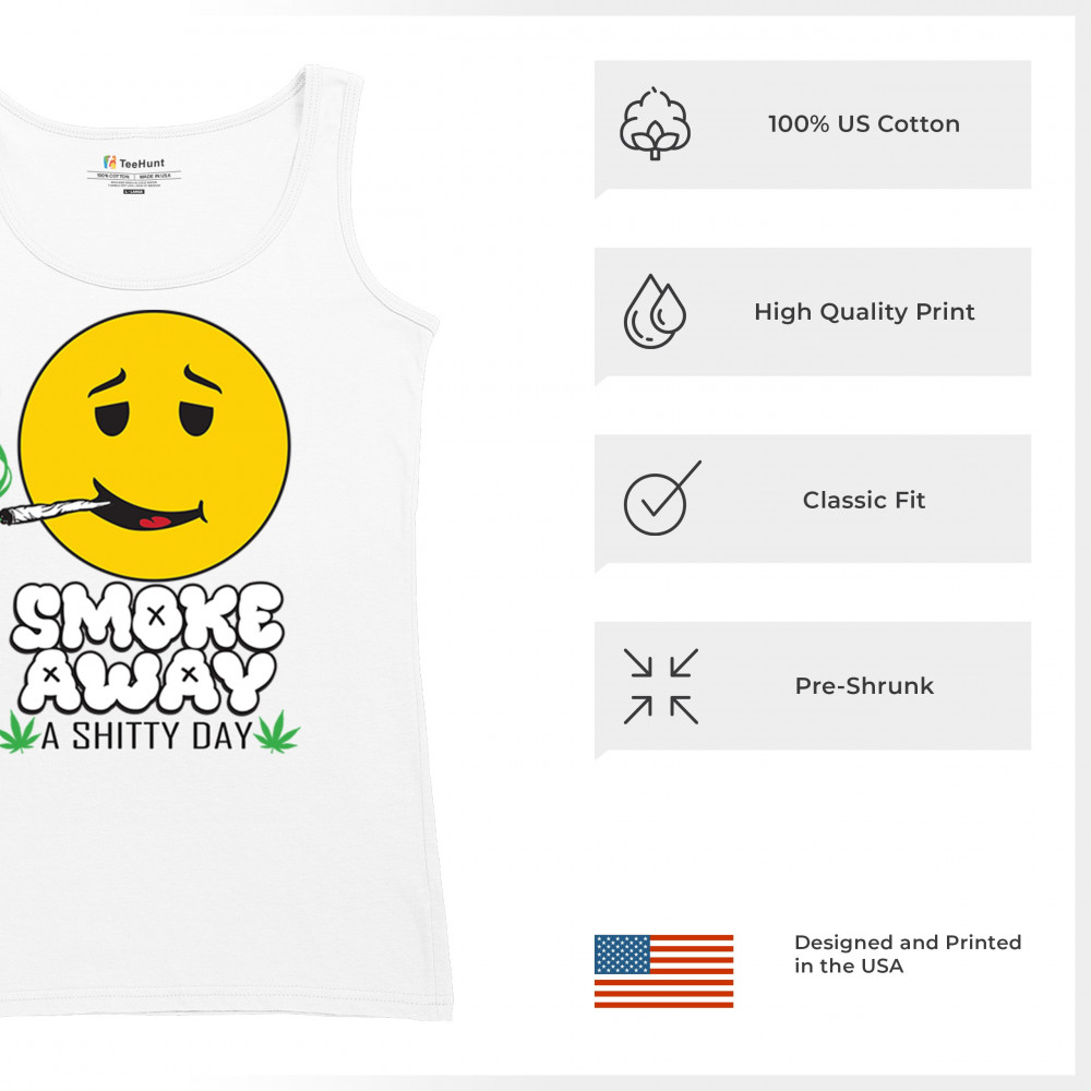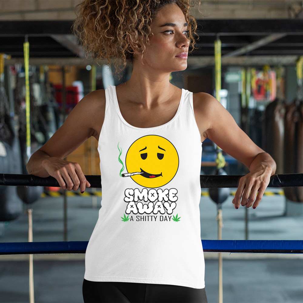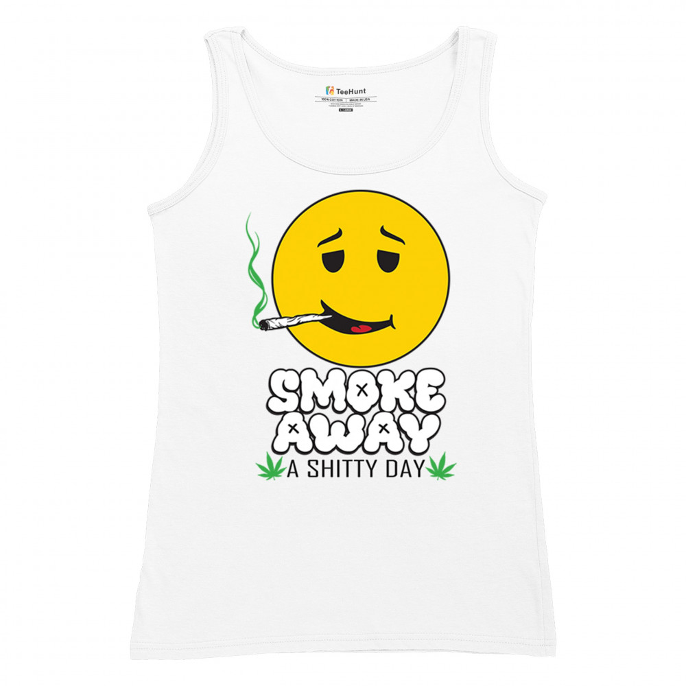 Smiley face with joint and “Smoke Away a Sh*tty Day†message. A perfect cannabis design for stoners, chillers, and sarcastic stress relief.
