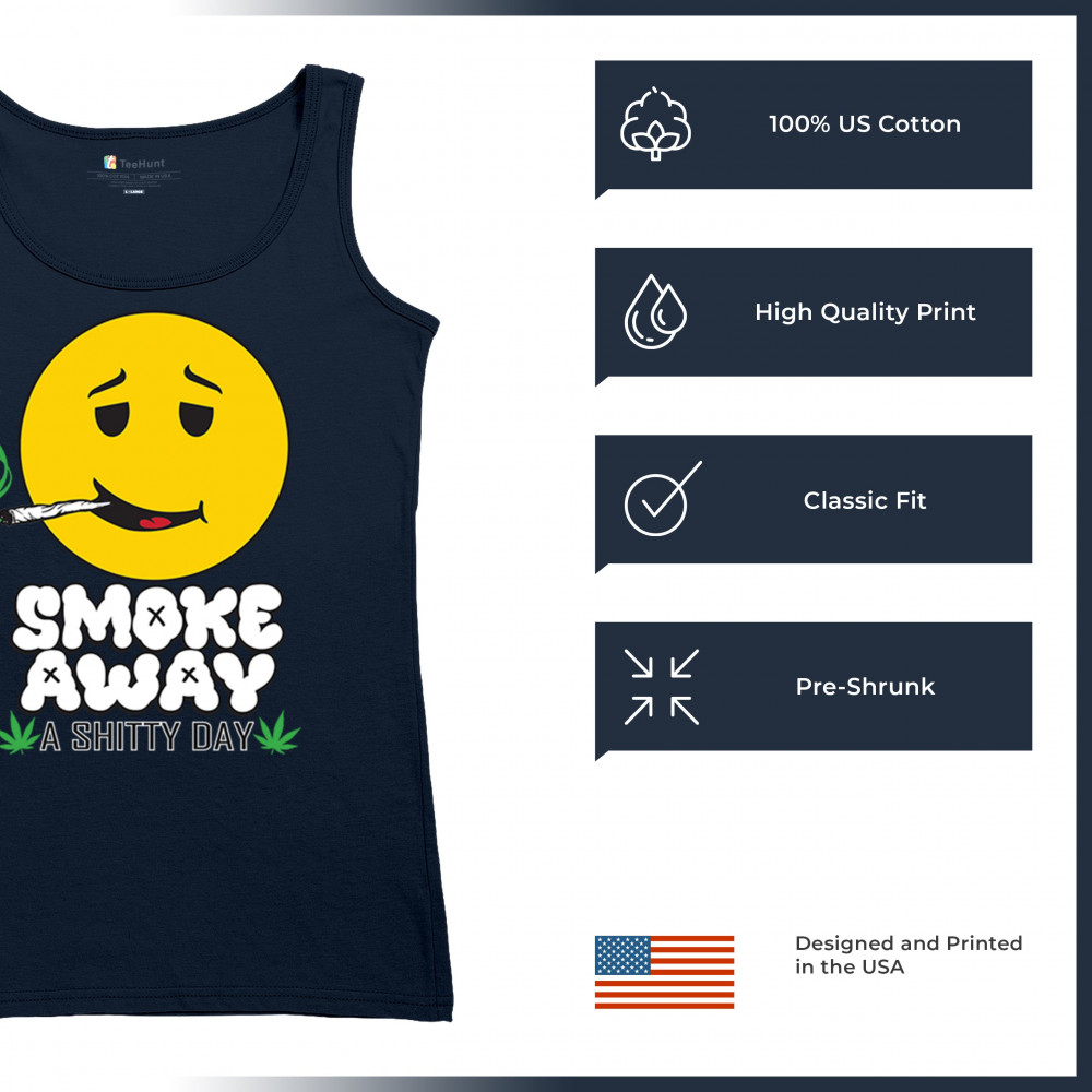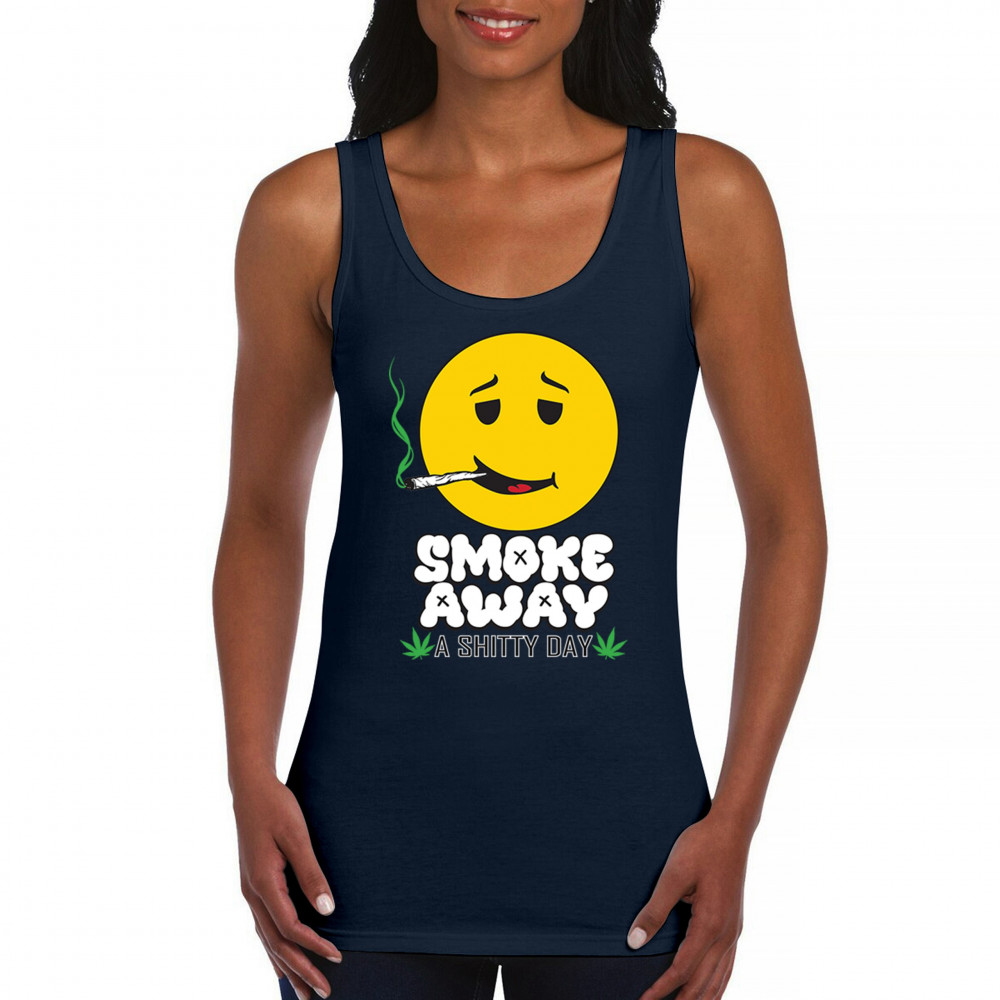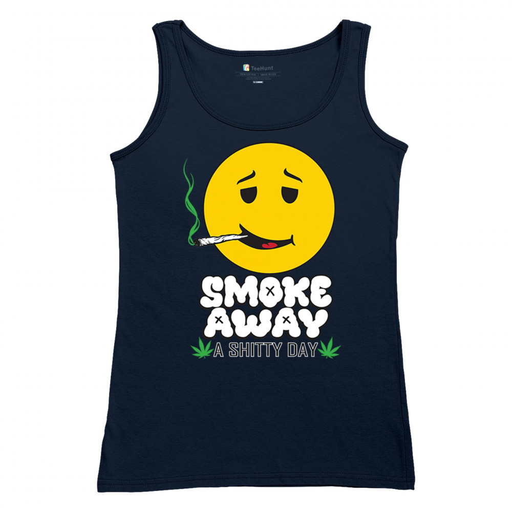 Smiley face with joint and “Smoke Away a Sh*tty Day†message. A perfect cannabis design for stoners, chillers, and sarcastic stress relief.
