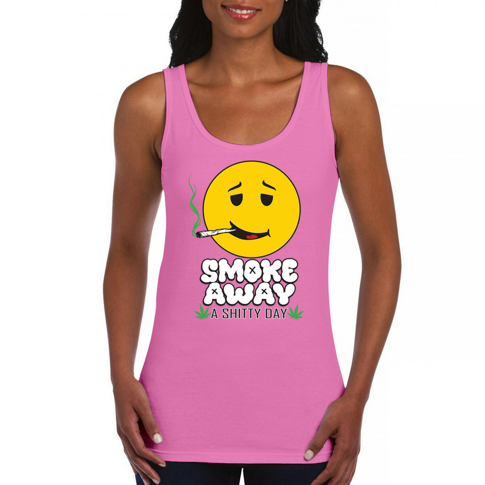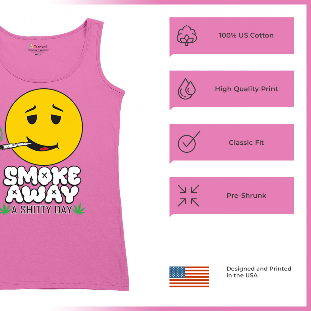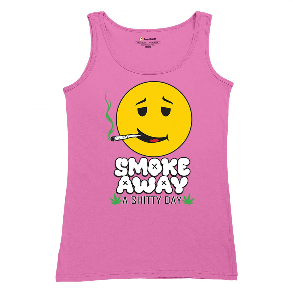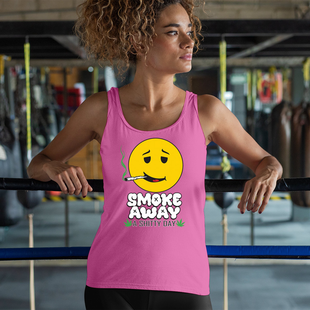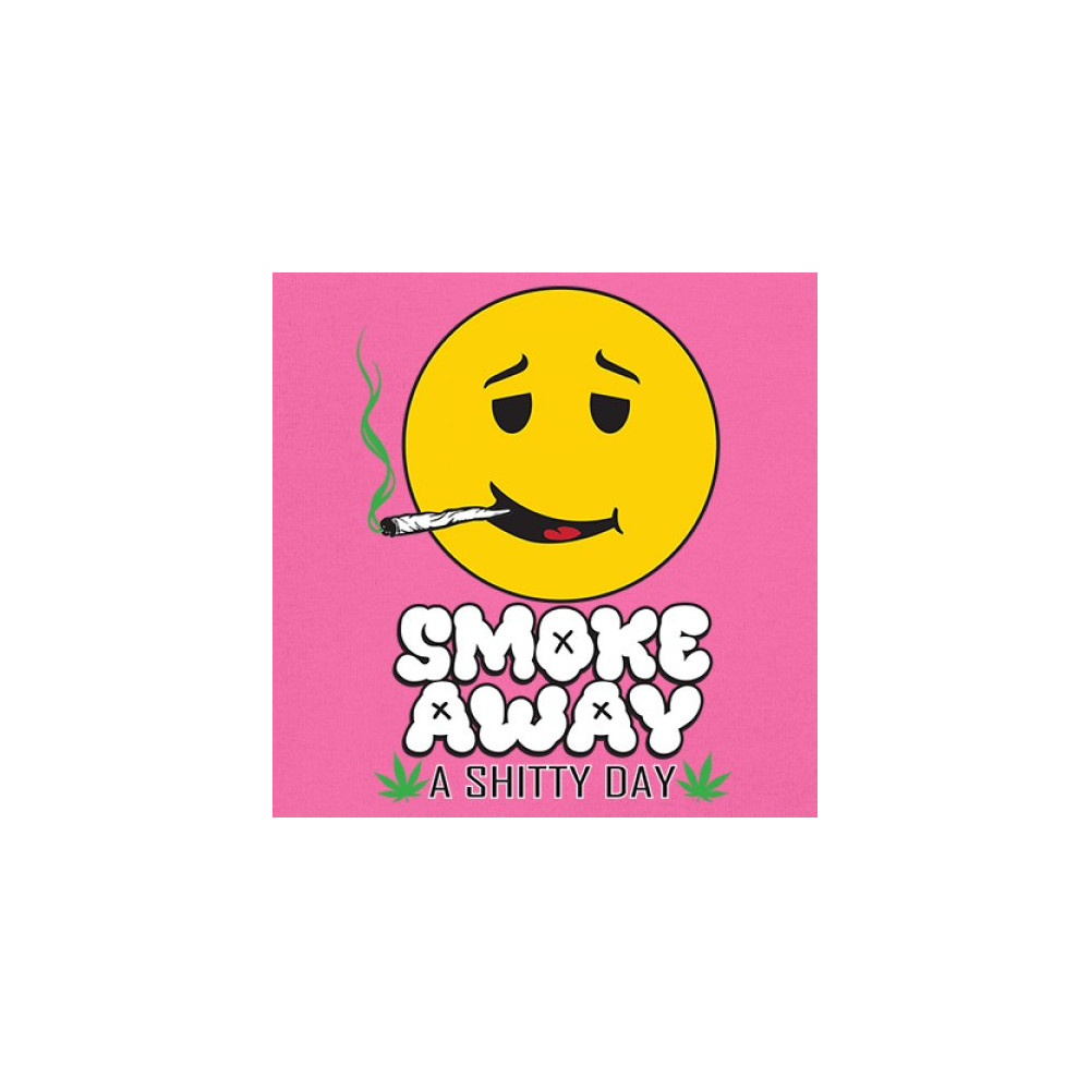 Smiley face with joint and “Smoke Away a Sh*tty Day†message. A perfect cannabis design for stoners, chillers, and sarcastic stress relief.