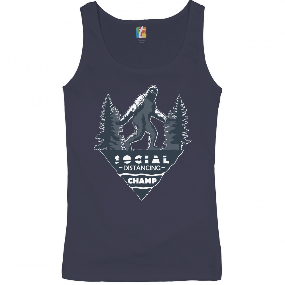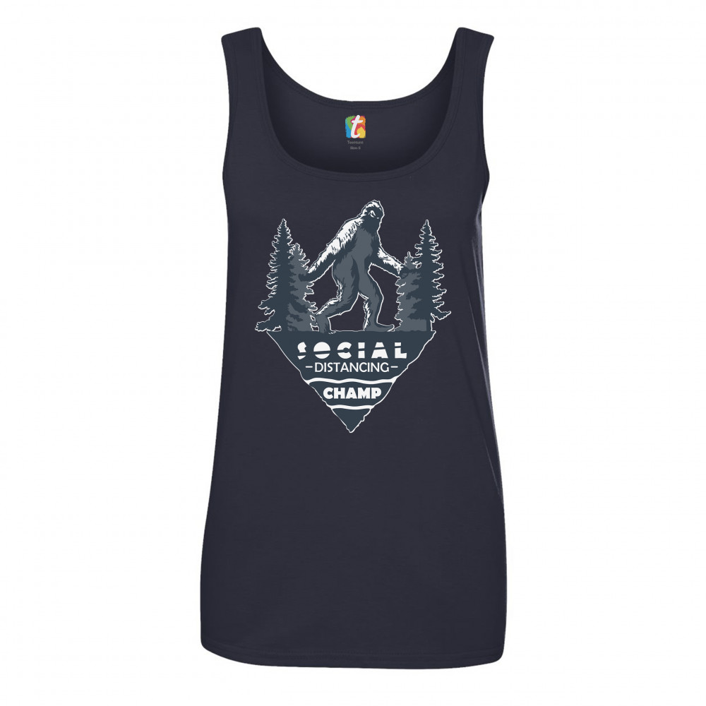 SOCIAL DISTANCING CHAMP women's tank top funny bigfoot yeti virus quarantine navy blue