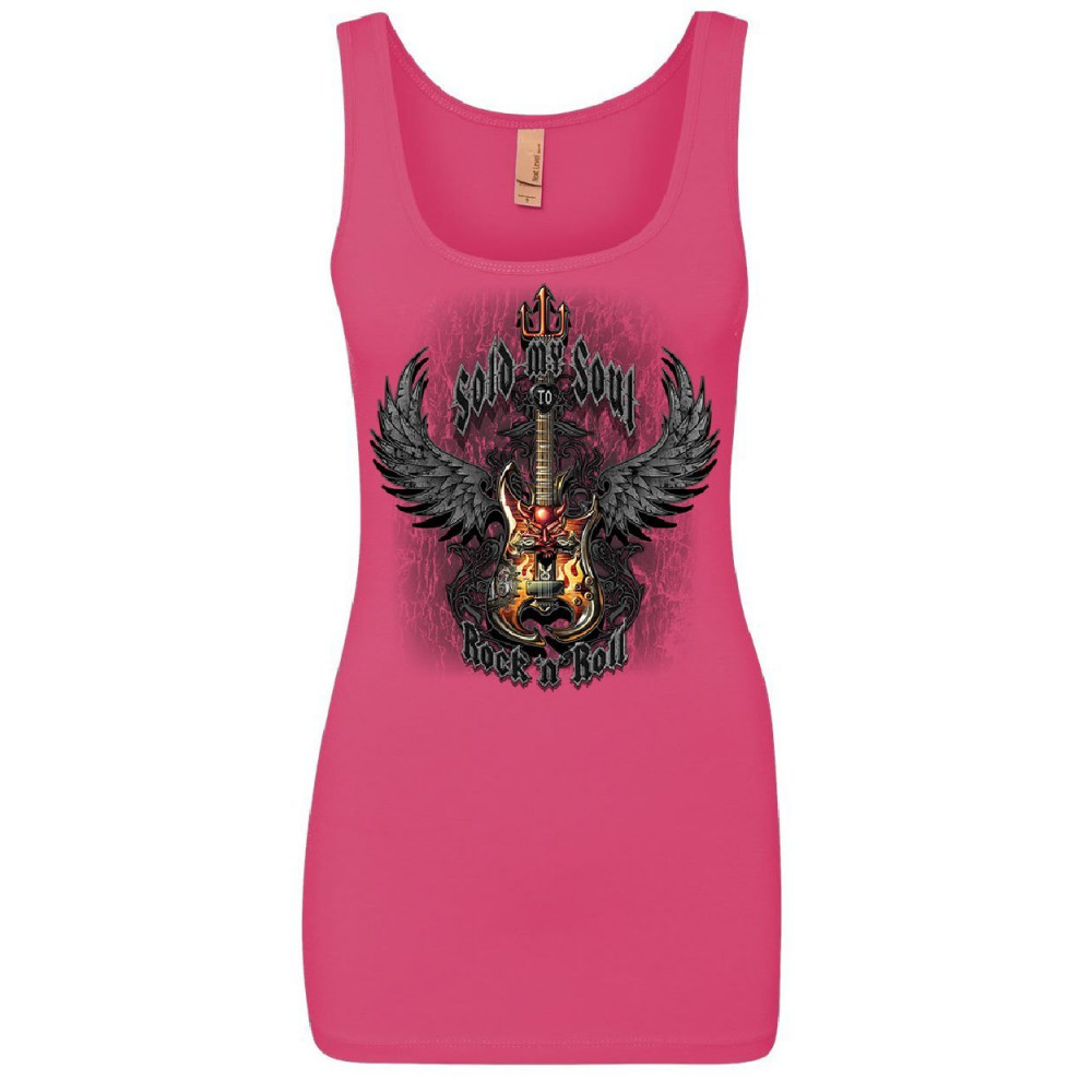 SOLD MY SOUL TO ROCK & ROLL women's tank top demon guitar wings trident top pink