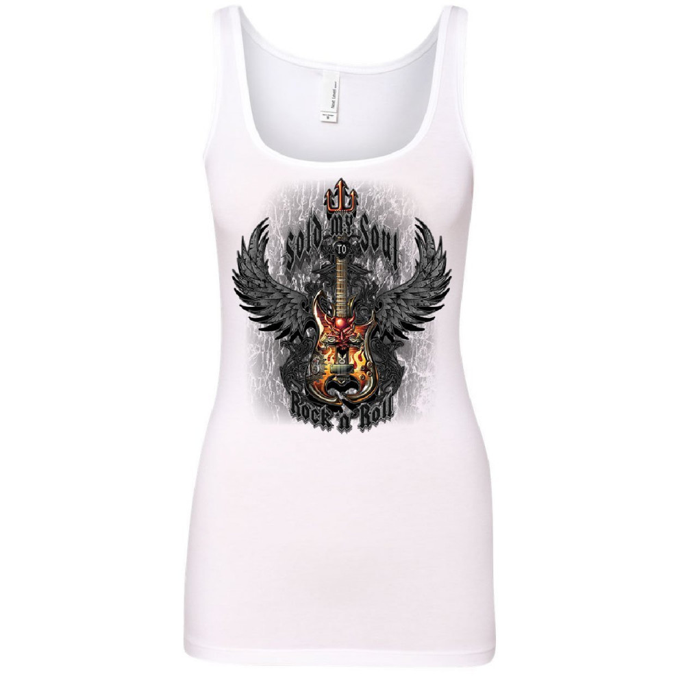 SOLD MY SOUL TO ROCK & ROLL women's tank top demon guitar wings trident top white