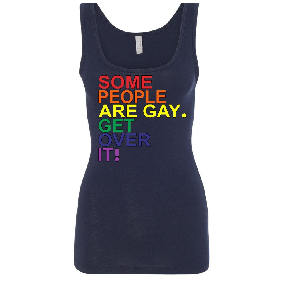 SOME PEOPLE ARE GAY. GET OVER IT! women's tank top lgbtq pride rainbow top navy blue