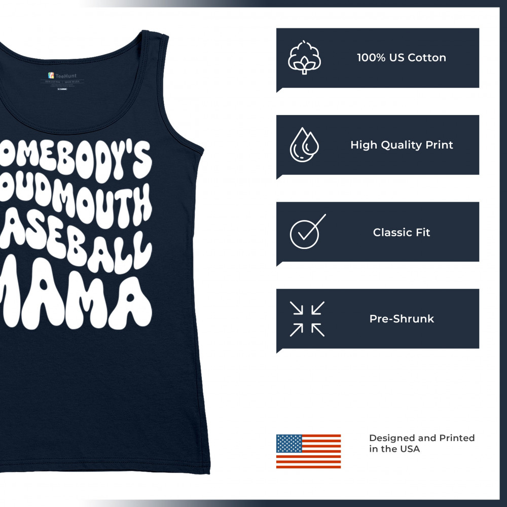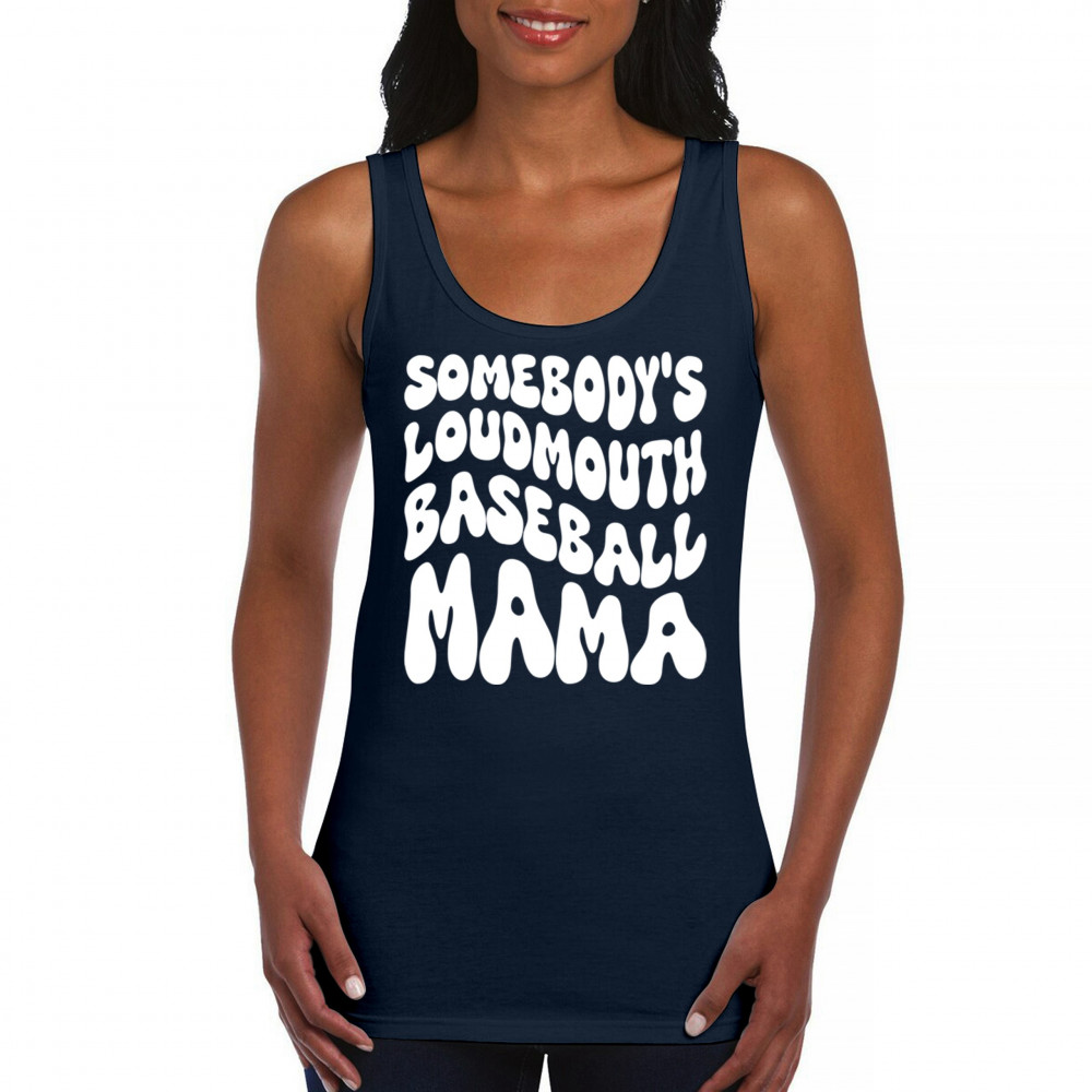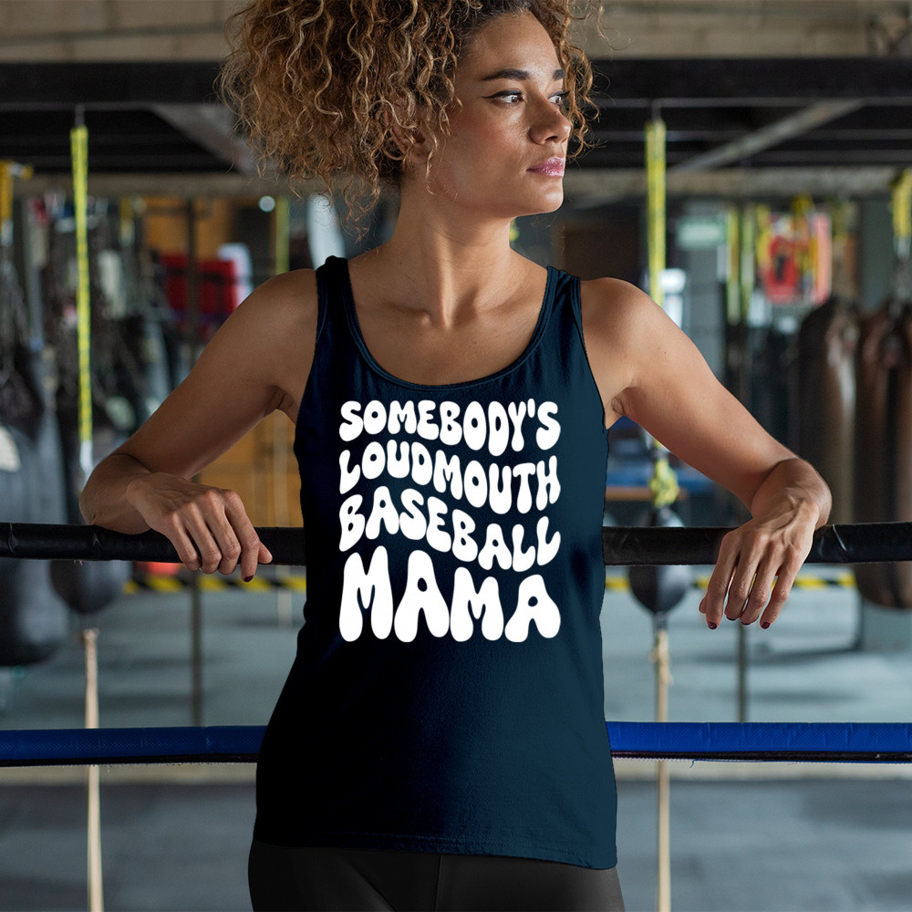 Show off your spirited support with the "Somebody's Loudmouth Baseball Mama" design. Perfect for game days, this bold and playful design captures your enthusiasm and pride.