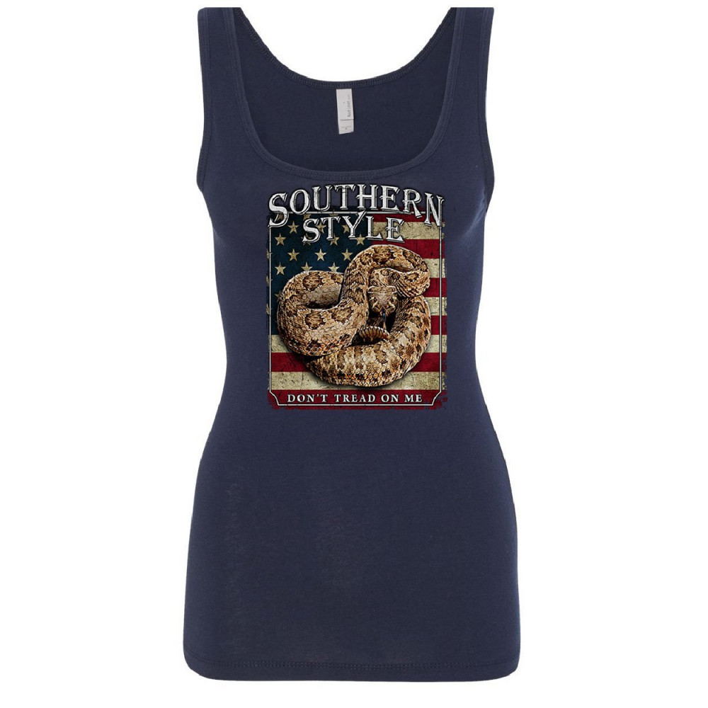 SOUTHERN STYLE RATTLESNAKE women's tank top don't tread on me gadsden usa top navy blue