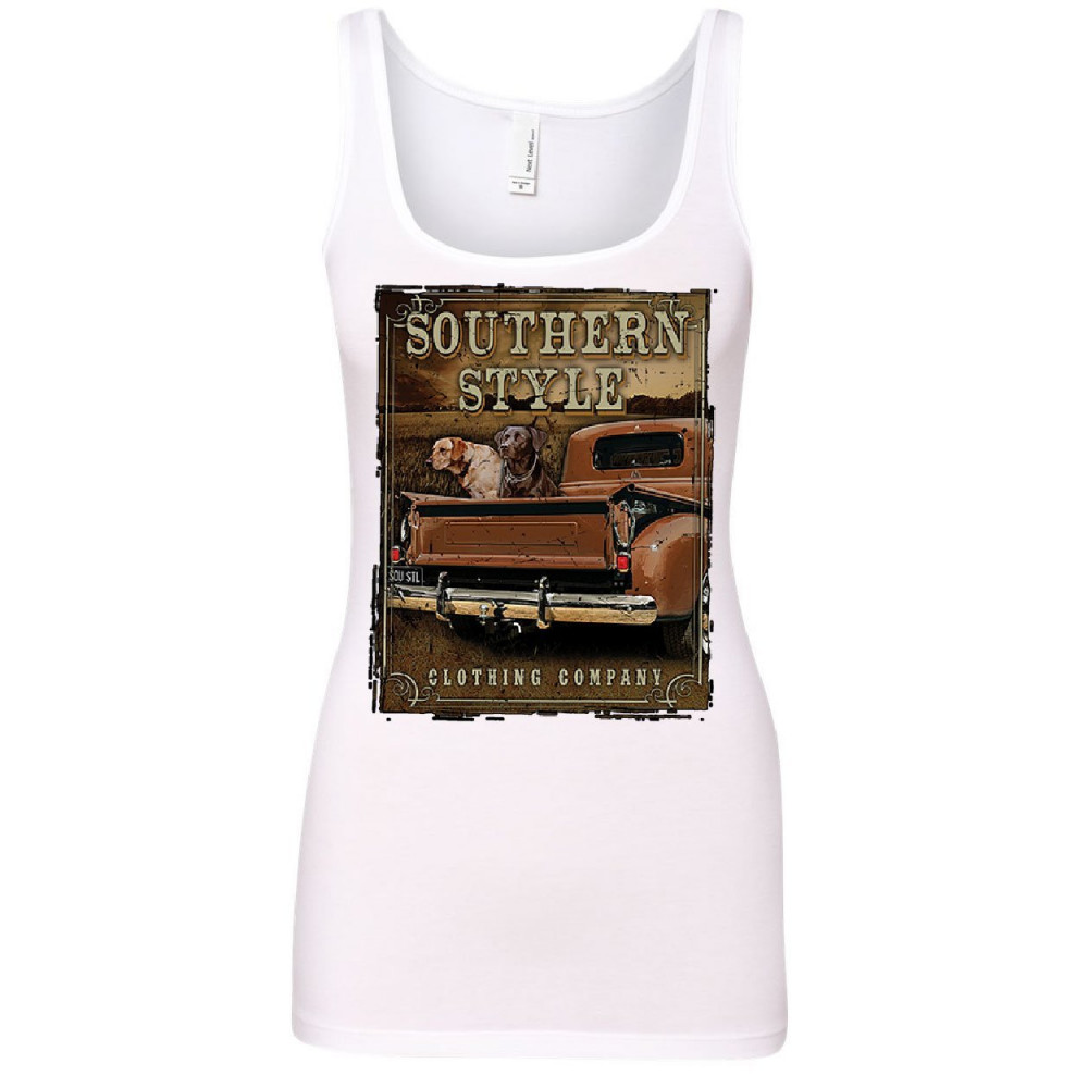 SOUTHERN STYLE women's tank top truck country farm labrador retriever top white