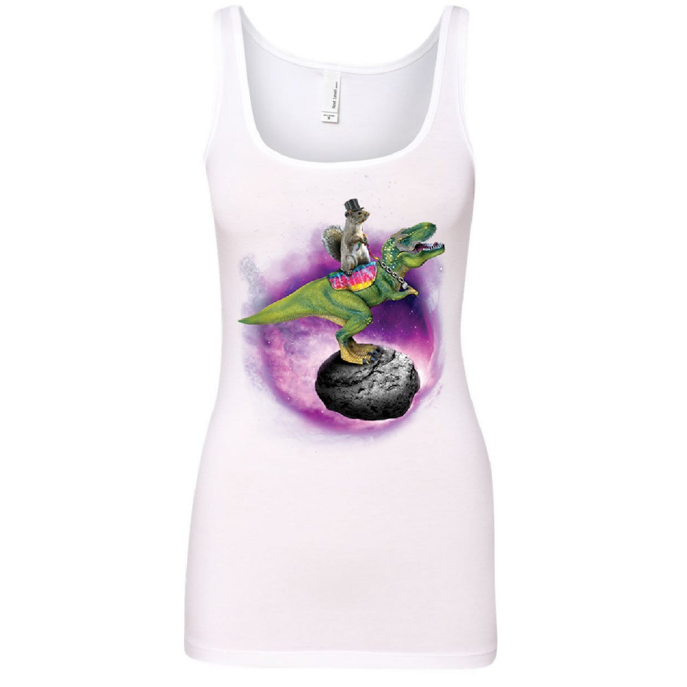 SQUIRREL RIDING T-REX RIDING ASTEROID women's tank top funny space weird top white