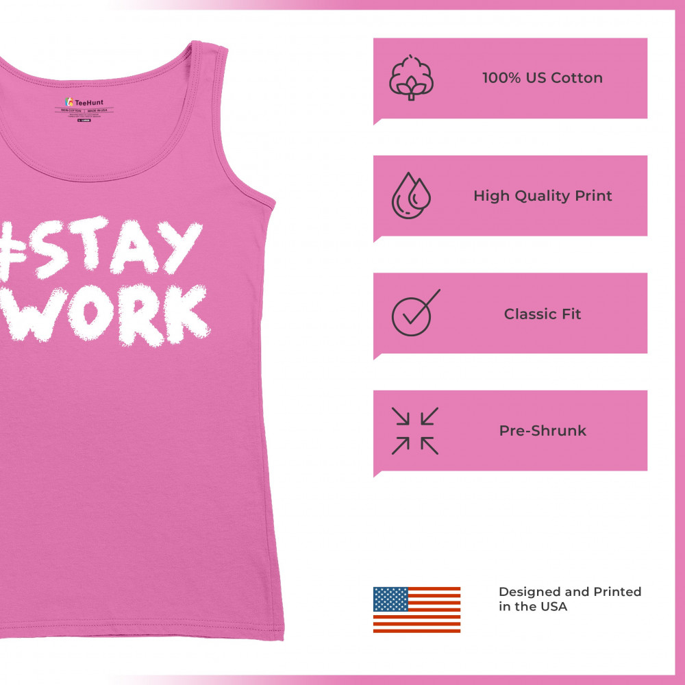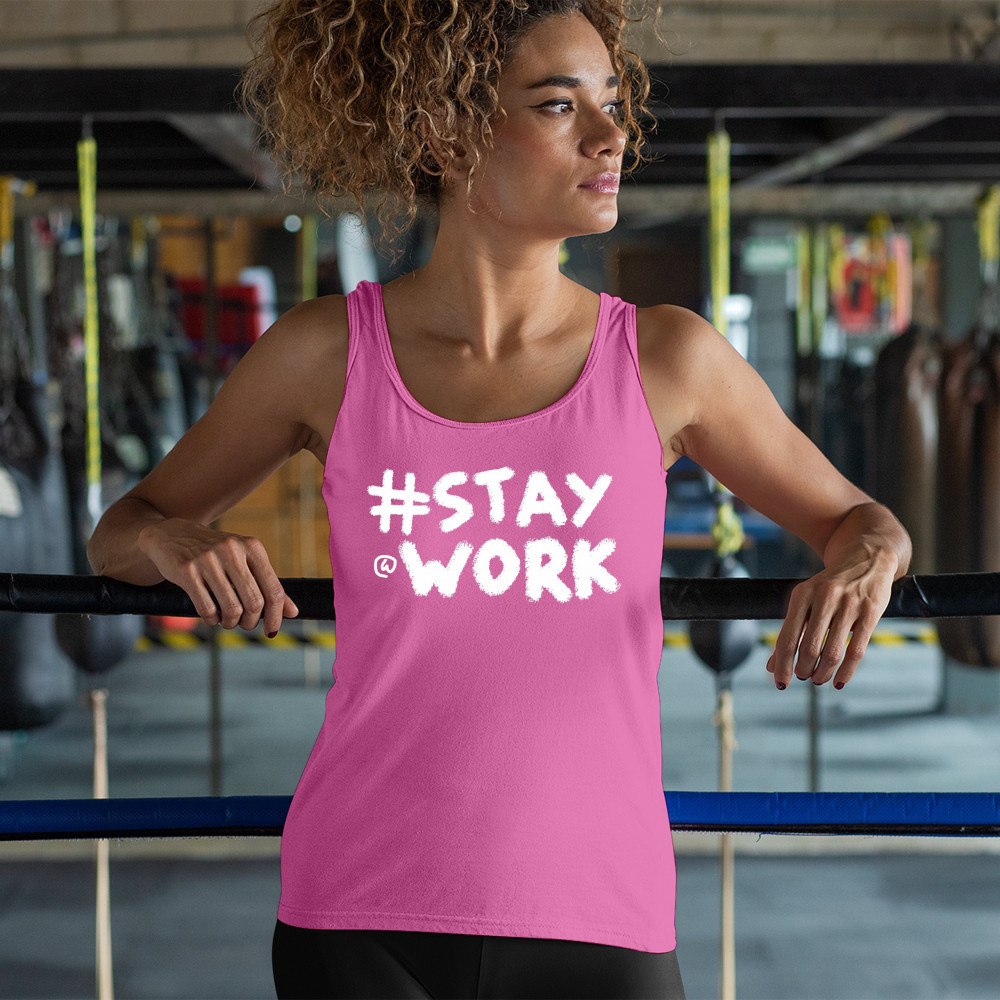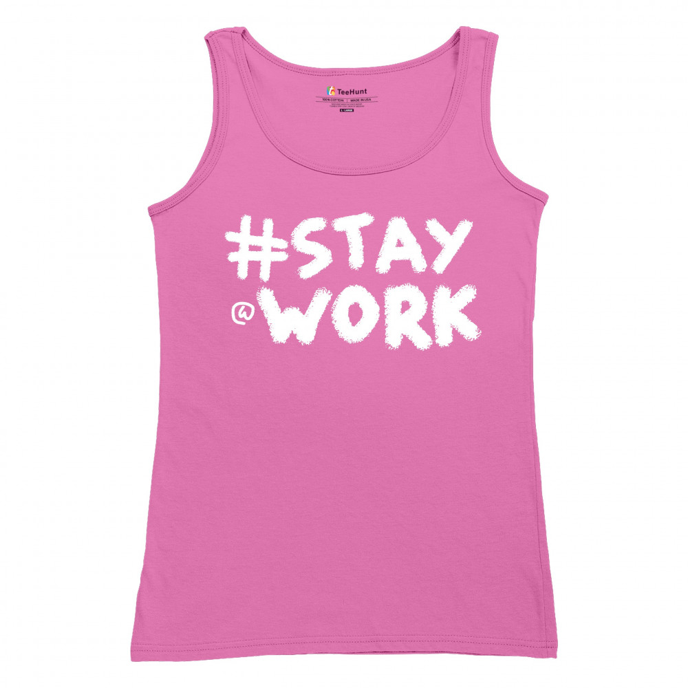 STAY AT WORK FUNNY ELON MUSK TWEET PARODY women's tank top liberal sarcasm pink