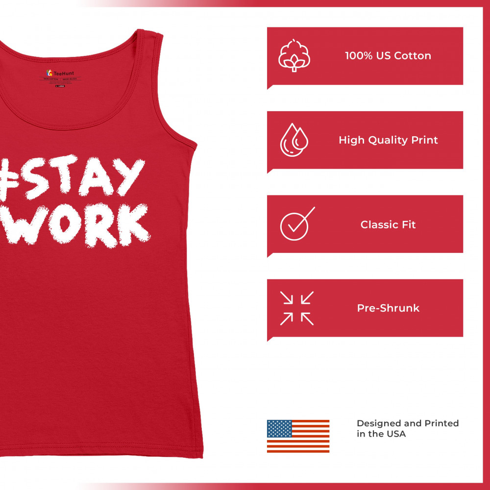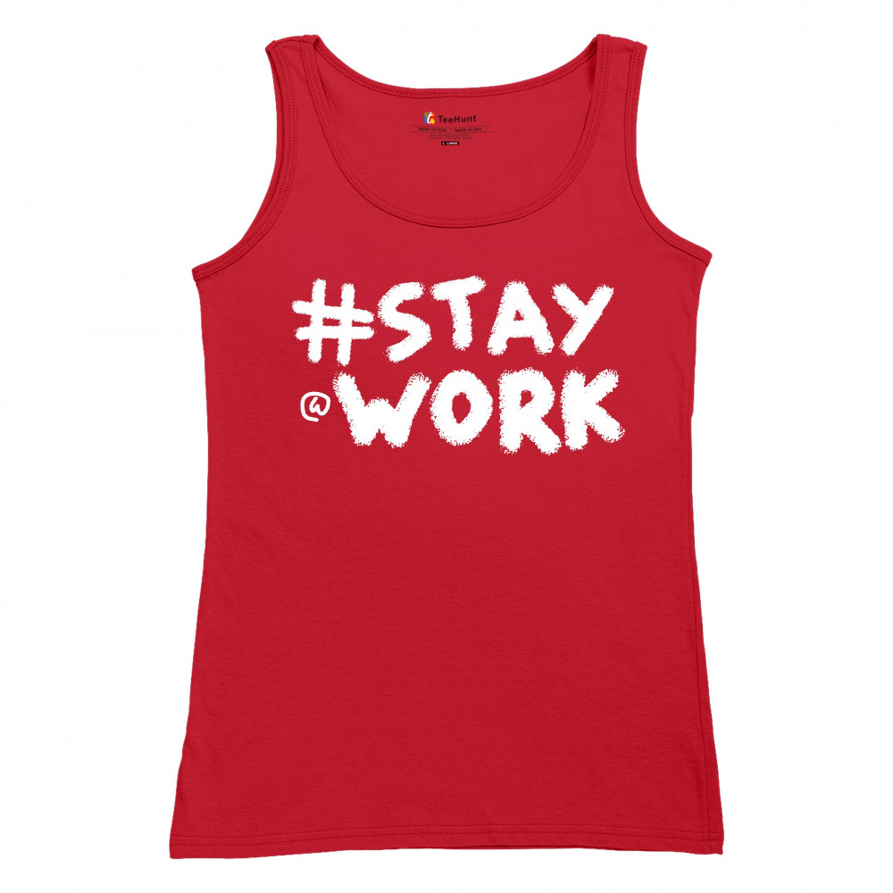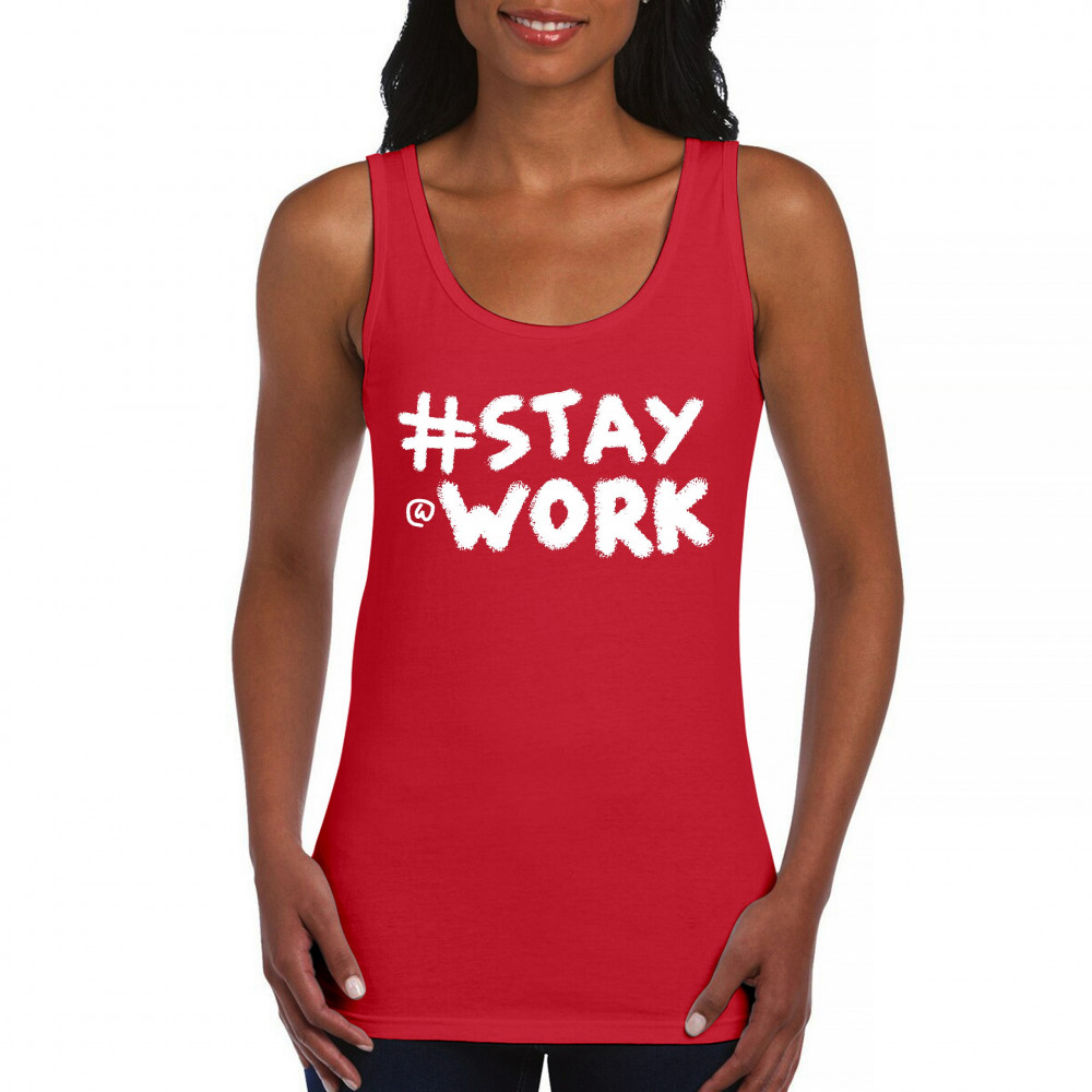 STAY AT WORK FUNNY ELON MUSK TWEET PARODY women's tank top liberal sarcasm red