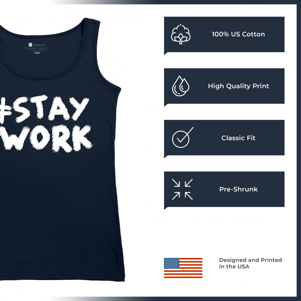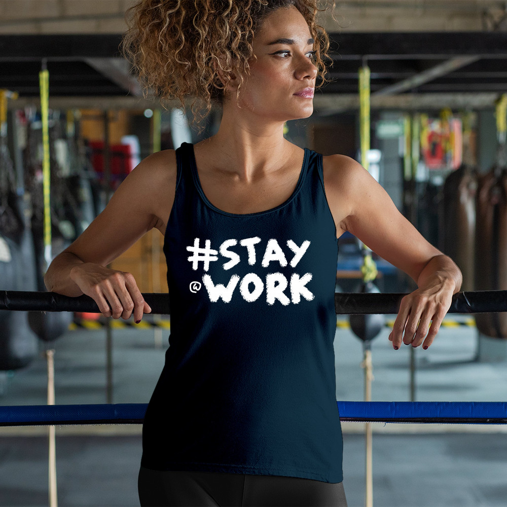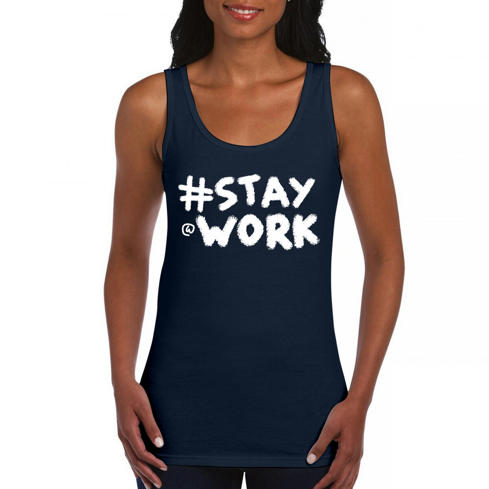 STAY AT WORK FUNNY ELON MUSK TWEET PARODY women's tank top liberal sarcasm navy blue