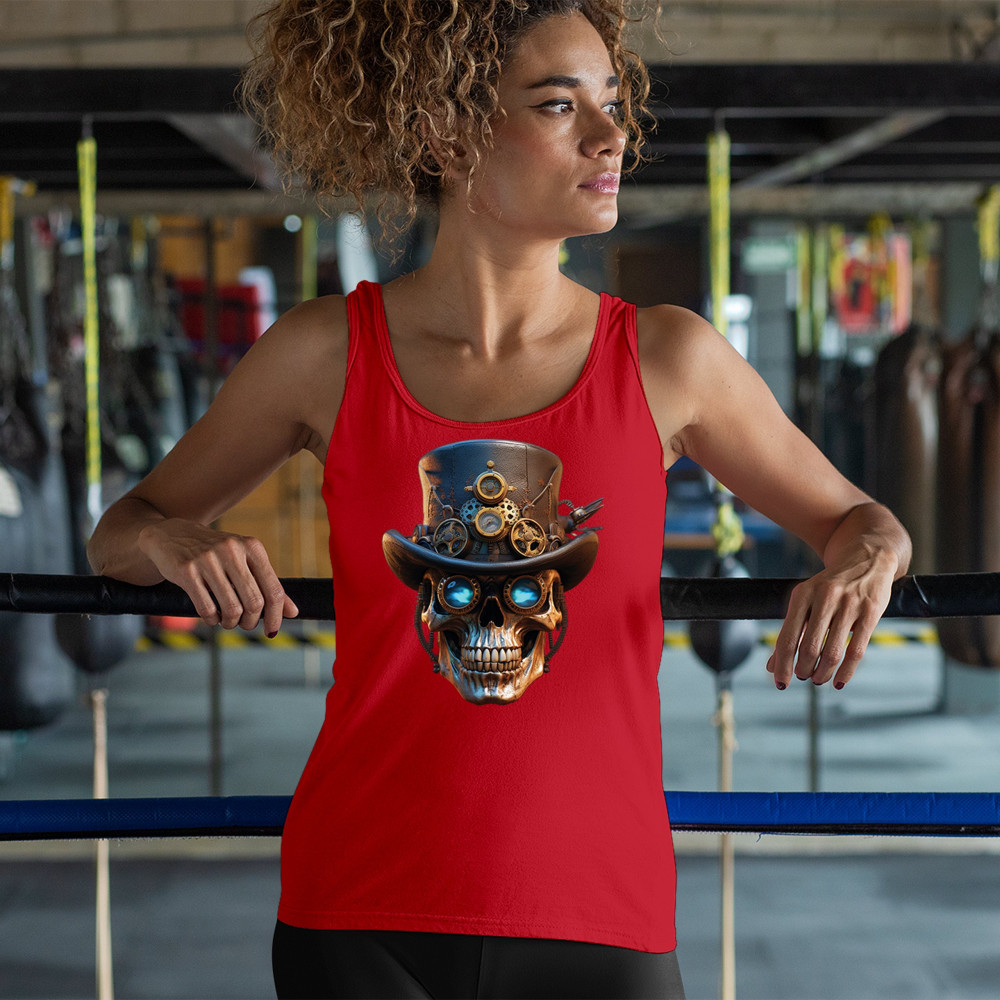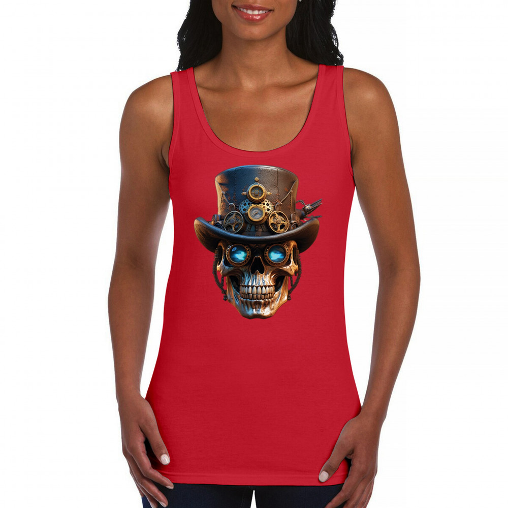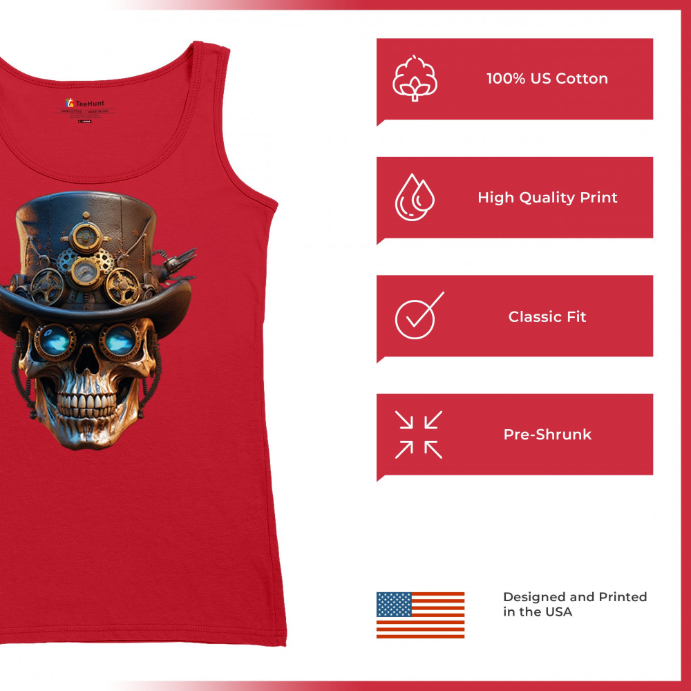 Steampunk skull shirt with gothic retro-futurism. Perfect for Halloween, cosplay, biker rallies, and edgy rebel fashion lovers.