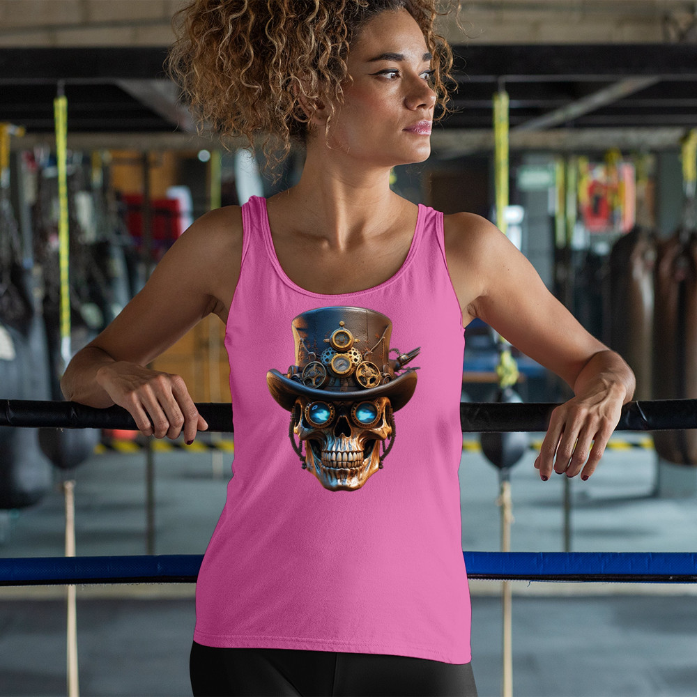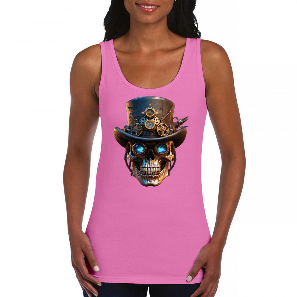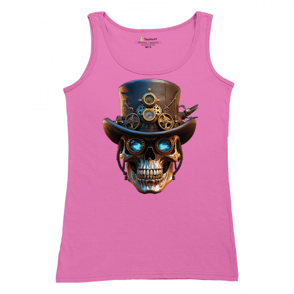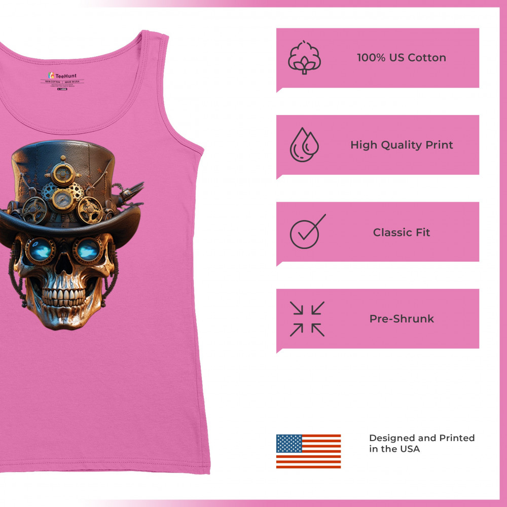 Steampunk skull shirt with gothic retro-futurism. Perfect for Halloween, cosplay, biker rallies, and edgy rebel fashion lovers.