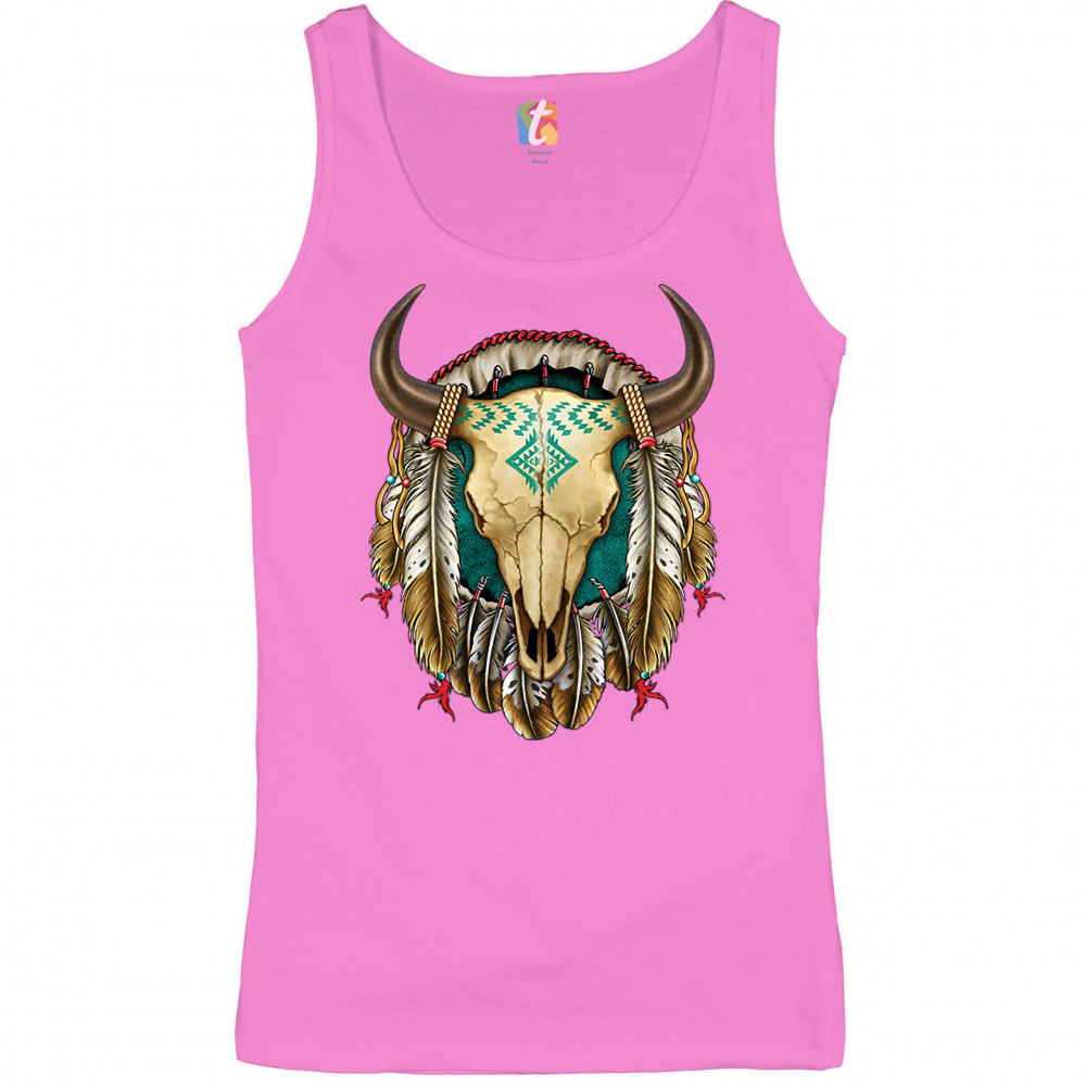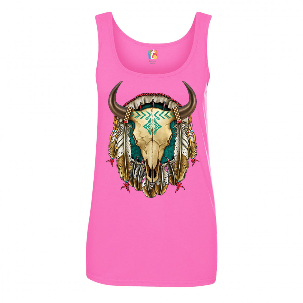 STEER SKULL DREAMCATCHER women's tank top native american indigenous culture pink