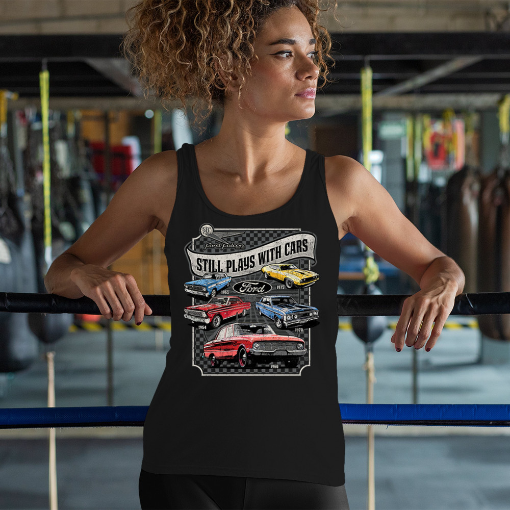 Still Plays With Cars pays tribute to the Ford Falcon, showcasing legendary models from the 60s and 70s for true vintage car lovers. Perfect for gearheads, hot rod fans, and classic car collectors, this design celebrates retro automobile culture, vintage horsepower, and old school rides. A great value piece for anyone devoted to the classic car scene.