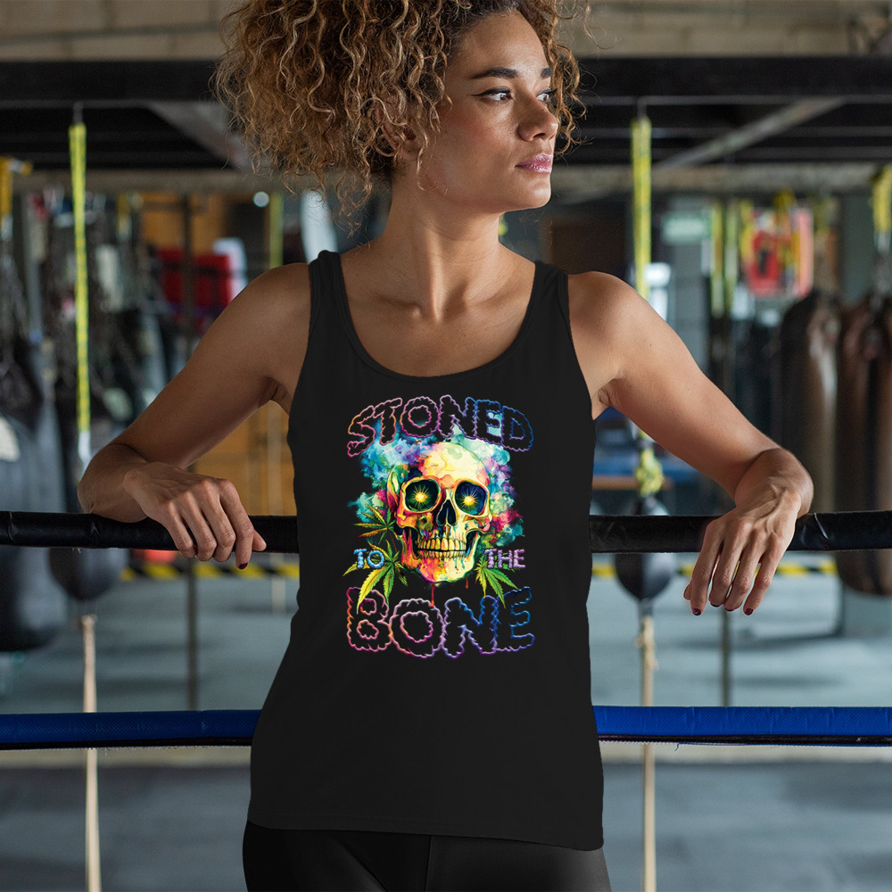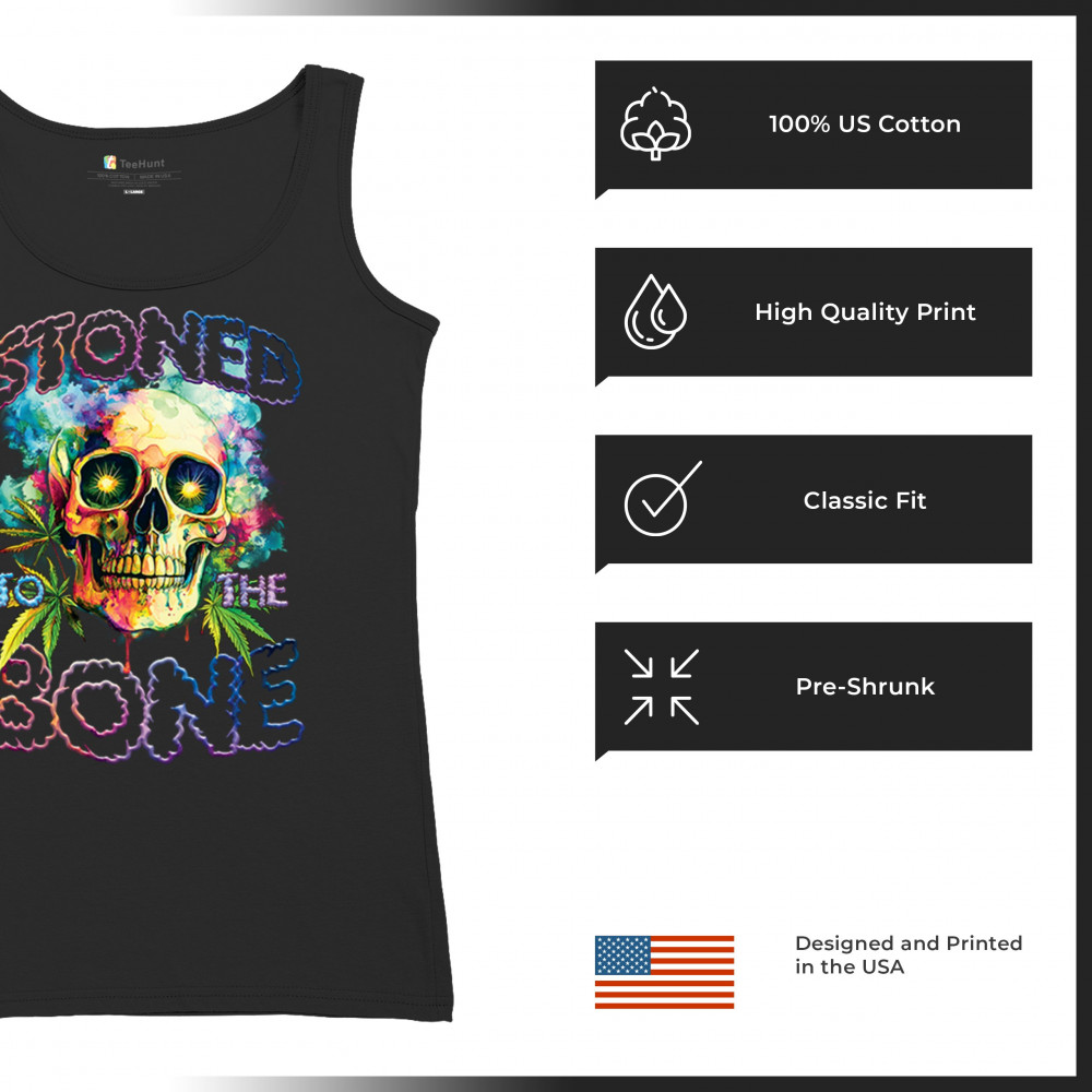 Turn heads with this bold, psychedelic “Stoned to the Bone†skull tee—loaded with neon colors, weed leaves, and a trippy aesthetic. It’s built for cannabis lovers, hippies, festival-goers, and party people living the high life. The ultimate head shop style and 420 fashion statement.