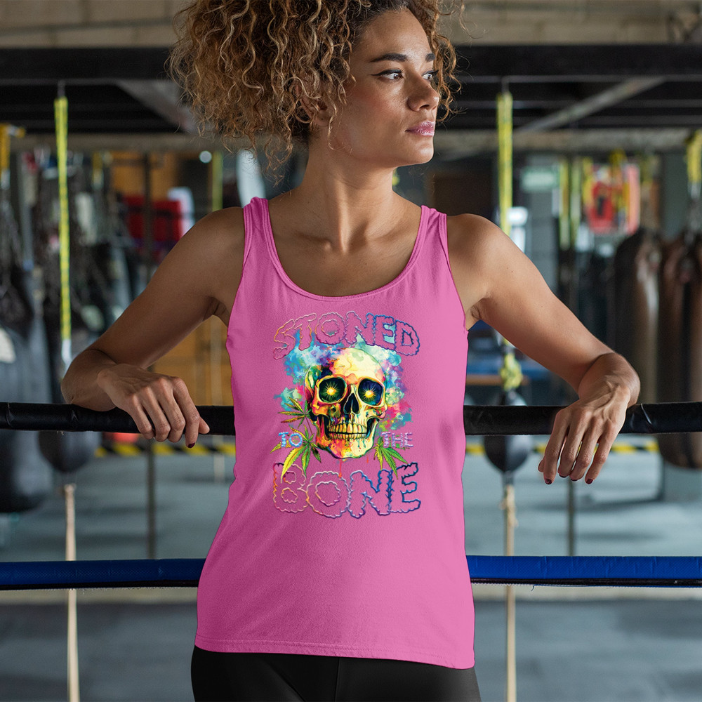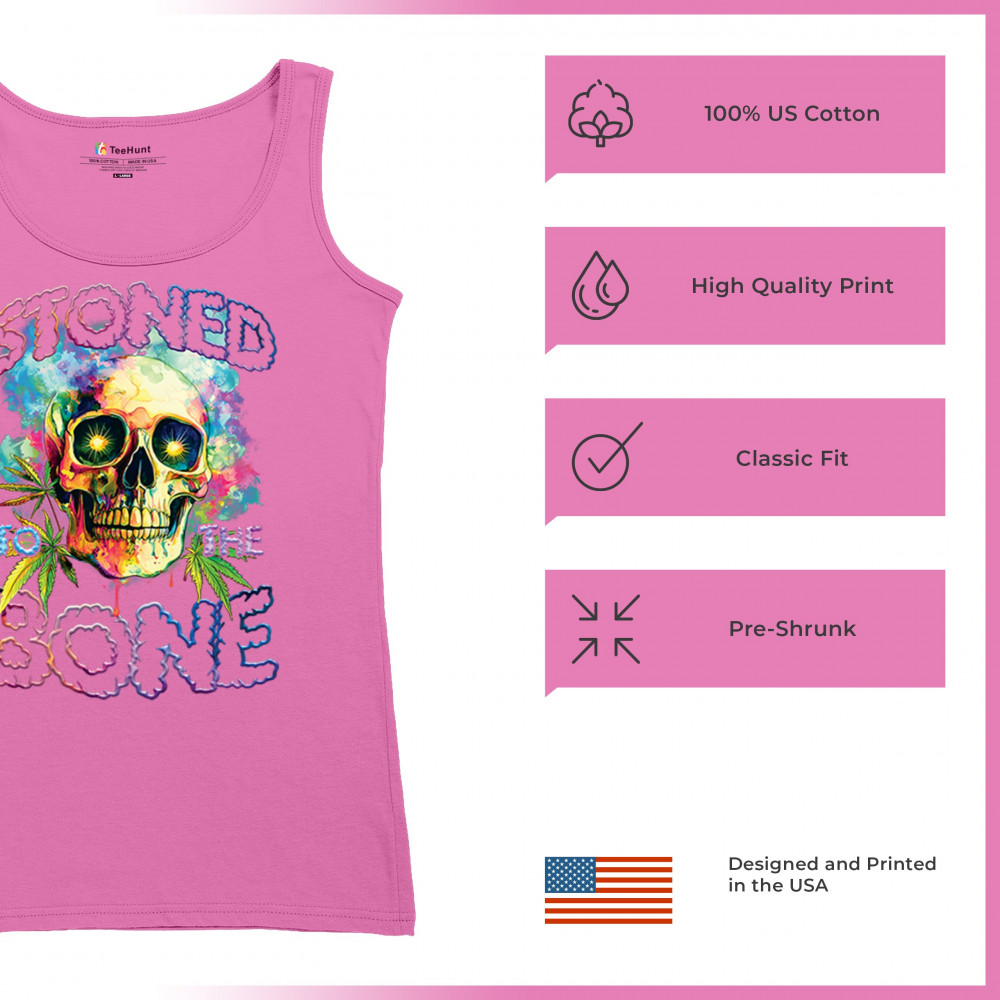 Turn heads with this bold, psychedelic “Stoned to the Bone†skull tee—loaded with neon colors, weed leaves, and a trippy aesthetic. It’s built for cannabis lovers, hippies, festival-goers, and party people living the high life. The ultimate head shop style and 420 fashion statement.