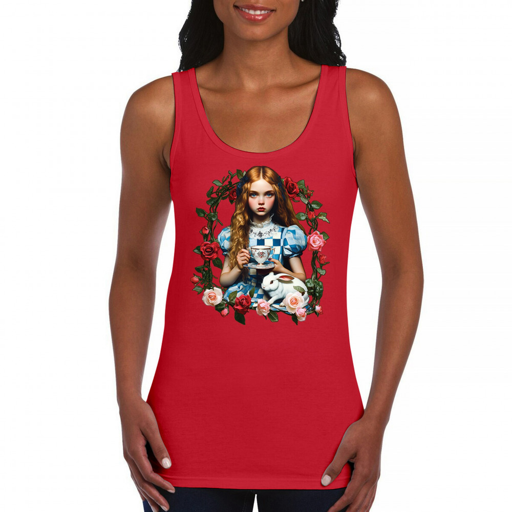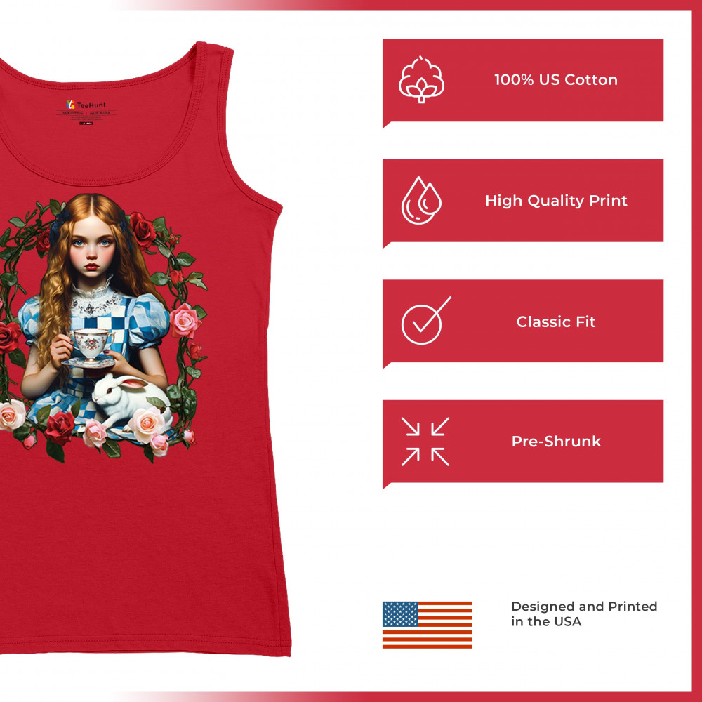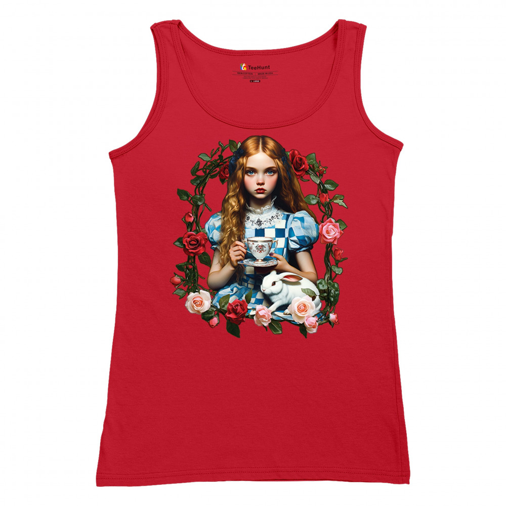Step into a storybook dream with this Wonderland-inspired design featuring a young girl at a tea party with her white rabbit companion. Framed by roses, it evokes vintage charm, fantasy, and magical nostalgia. Ideal for bookworms, collectors, and lovers of fairytales, it blends whimsical elegance with timeless childhood wonder.