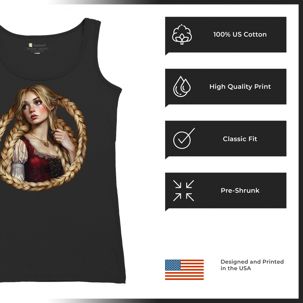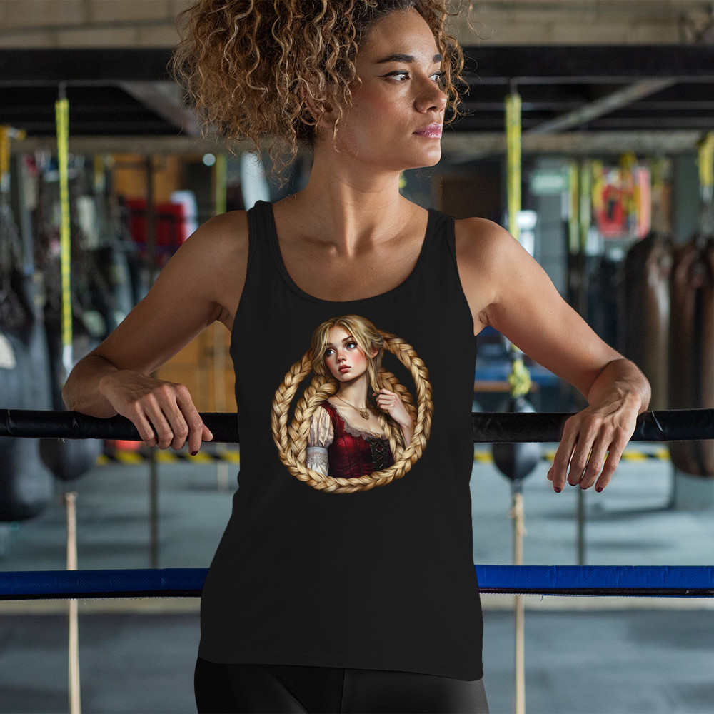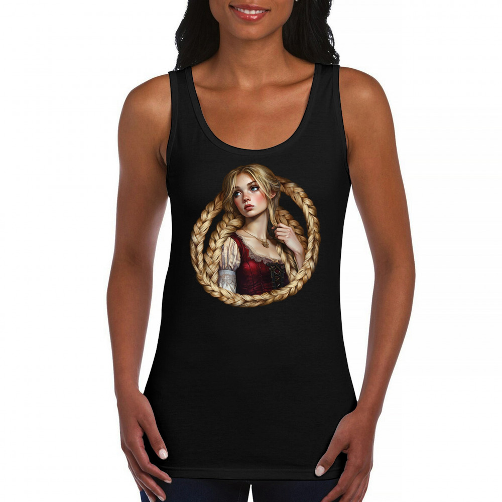 STORYBOOK RAPUNZEL women's tank top fairytale blonde hair fantasy princess black