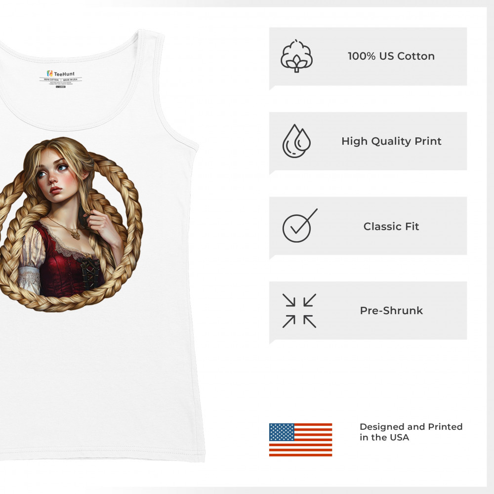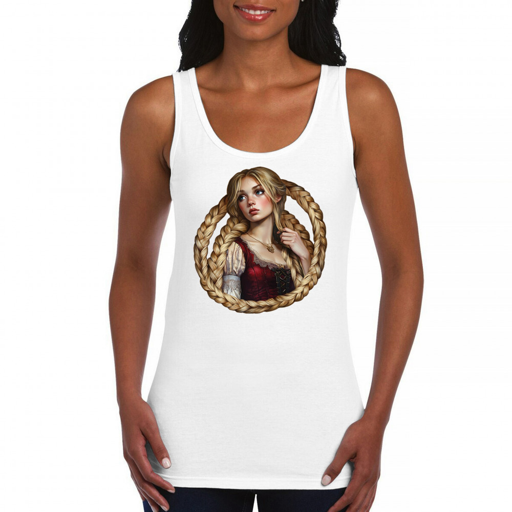 A dreamy design featuring a blonde girl with long braided hair encircling her like a frame. With vintage dress details and a wistful look, this artwork channels the essence of fairytales, romantic legends, and gentle feminine power. Ideal for fantasy lovers, folklore fans, and collectors of magical storybook themes.